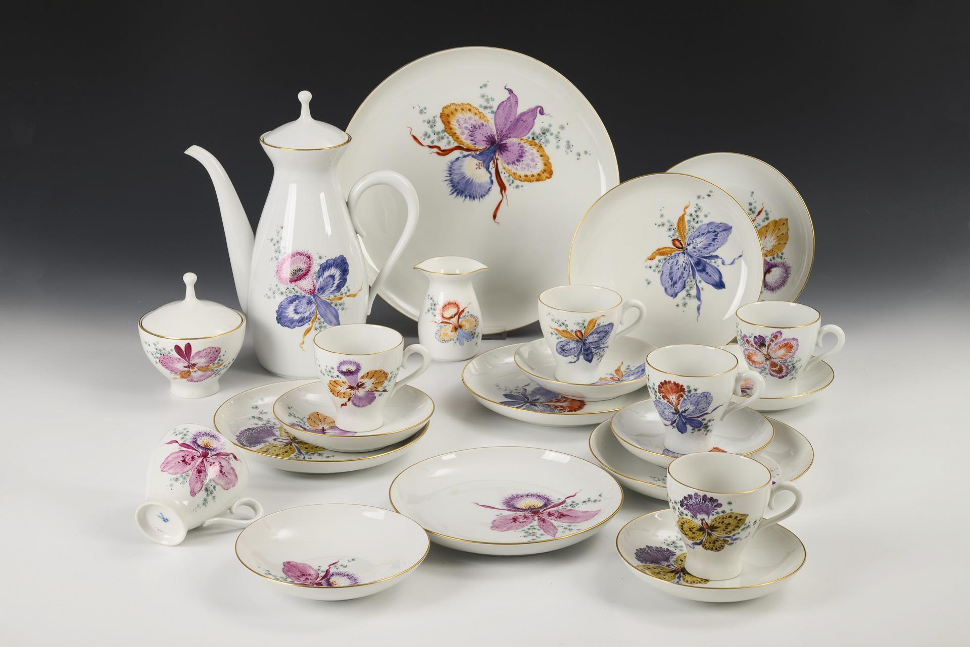 22 pieces. "Collective service" shape. Coffee pot (h 27.5 cm), milk jug, sugar bowl, 6 coffee cups, 6 saucers, 6 cake plates and 1 credenza plate.