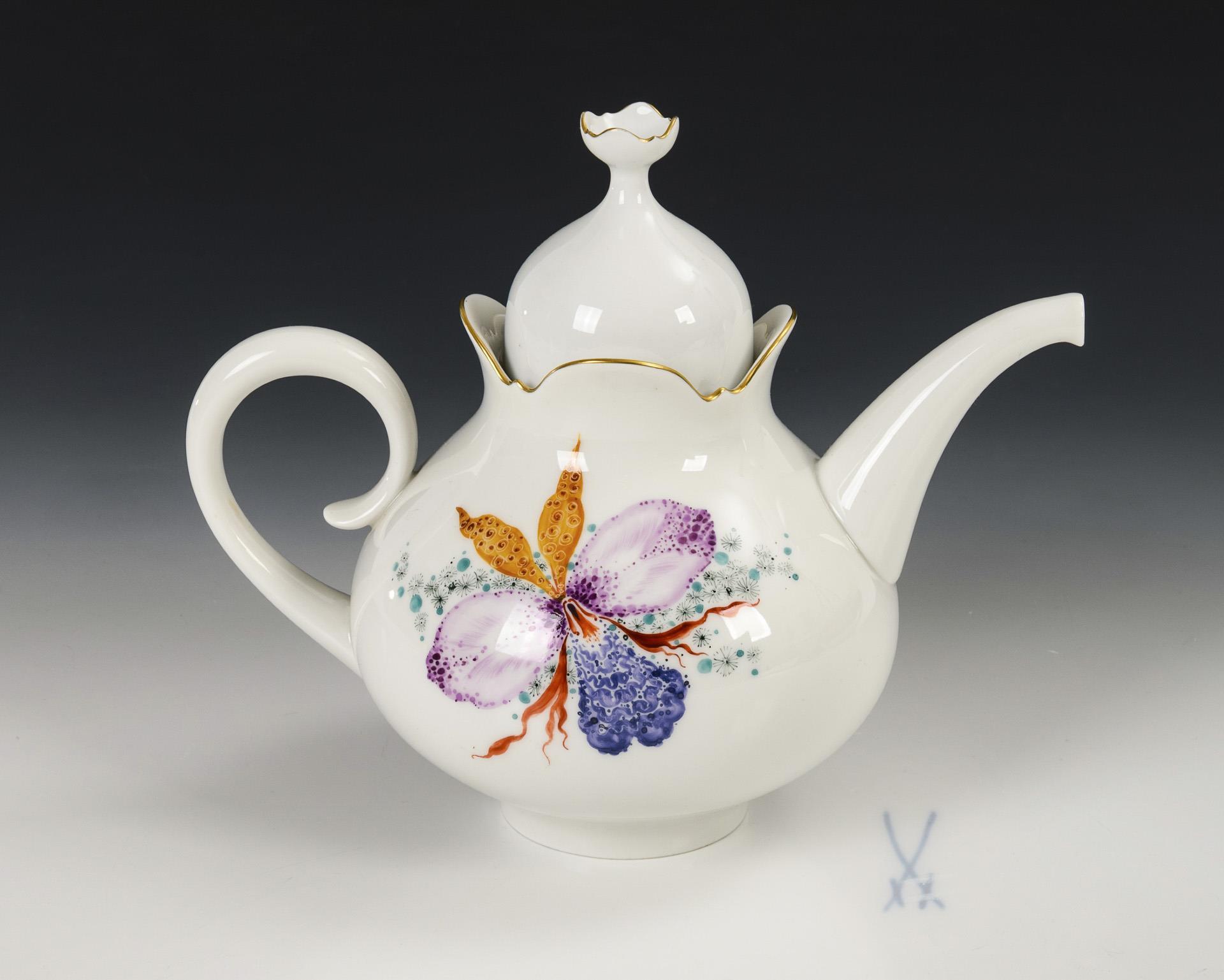 Teapot "Colorful Orchid". Meissen.