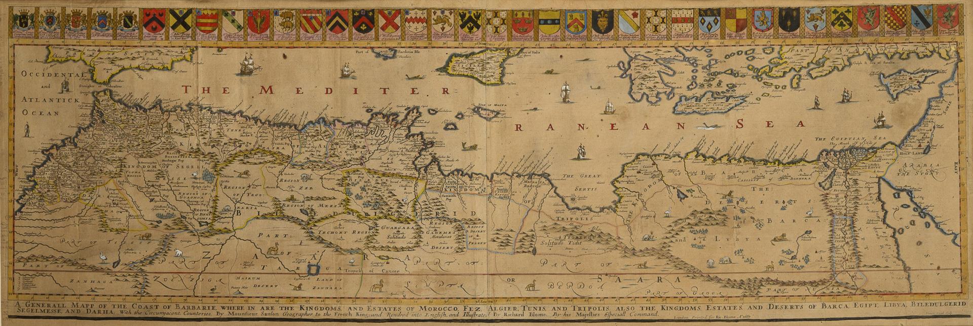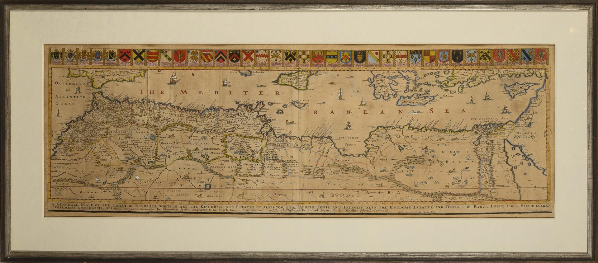 Colored copperplate engraving. Richard Blome, London. 1667.