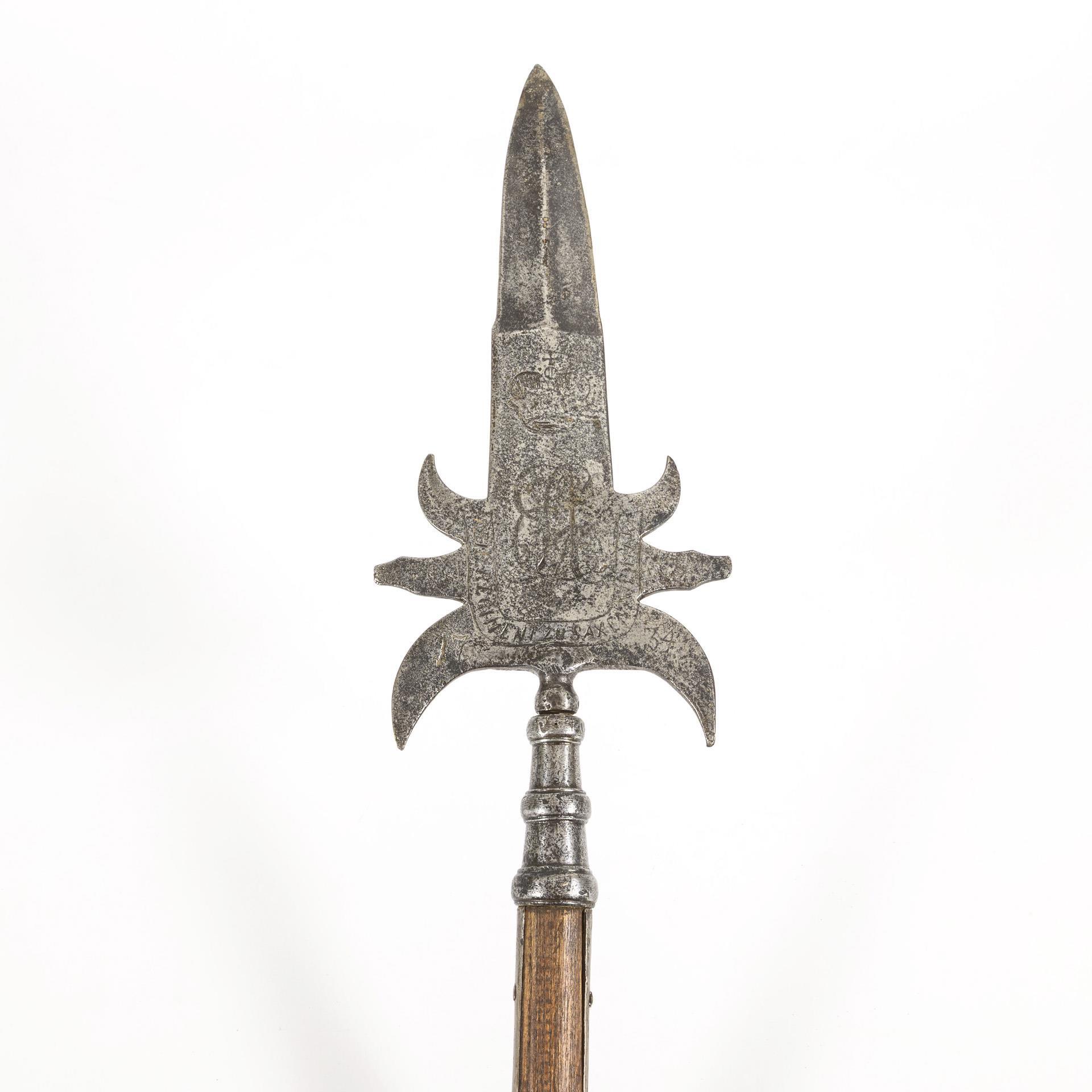 "Leib. Regiment zu Saxen Weimar 1734", monogram EA (Ernst August) with crown. Possibly made and dated on the occasion of the second marriage in 1734 to Sophie Charlotte Albertine, born Margravine of Brandenburg-Bayreuth. Leaf can be unscrewed, bar replaced more recently. Leaf heavily plastered, engraved and unstamped lettering.