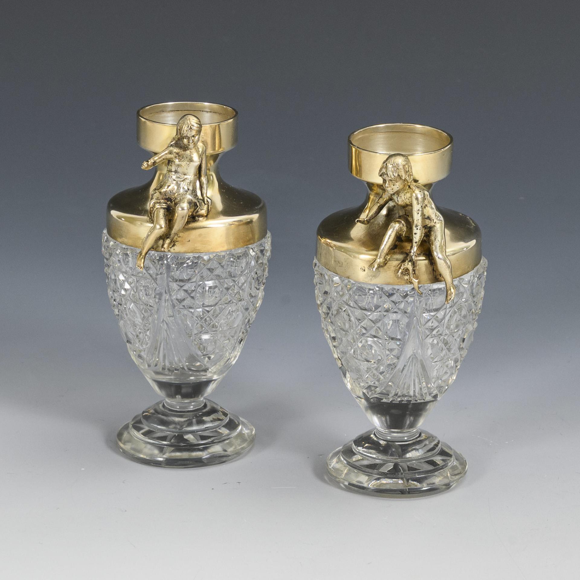 Clear glass, gilded silver. H 12 cm. Total weight 374 g.