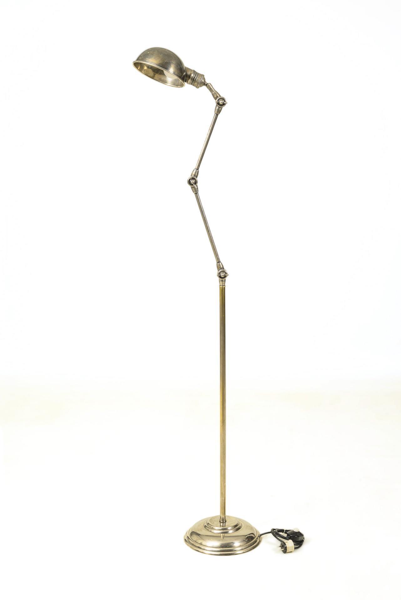 Brass/nickel(?), electrification with cable foot switch and screw socket. H maximum 179 cm. 5.8 kg.