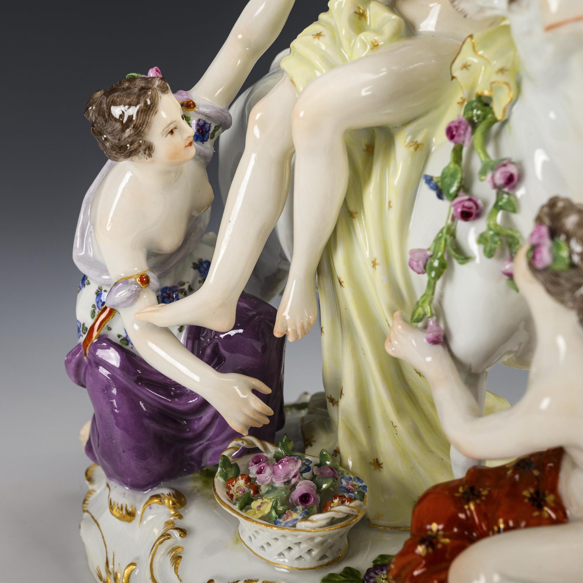 Polychrome painted, decorated with gold. H 21 cm. Approx. 1.8 kg.
