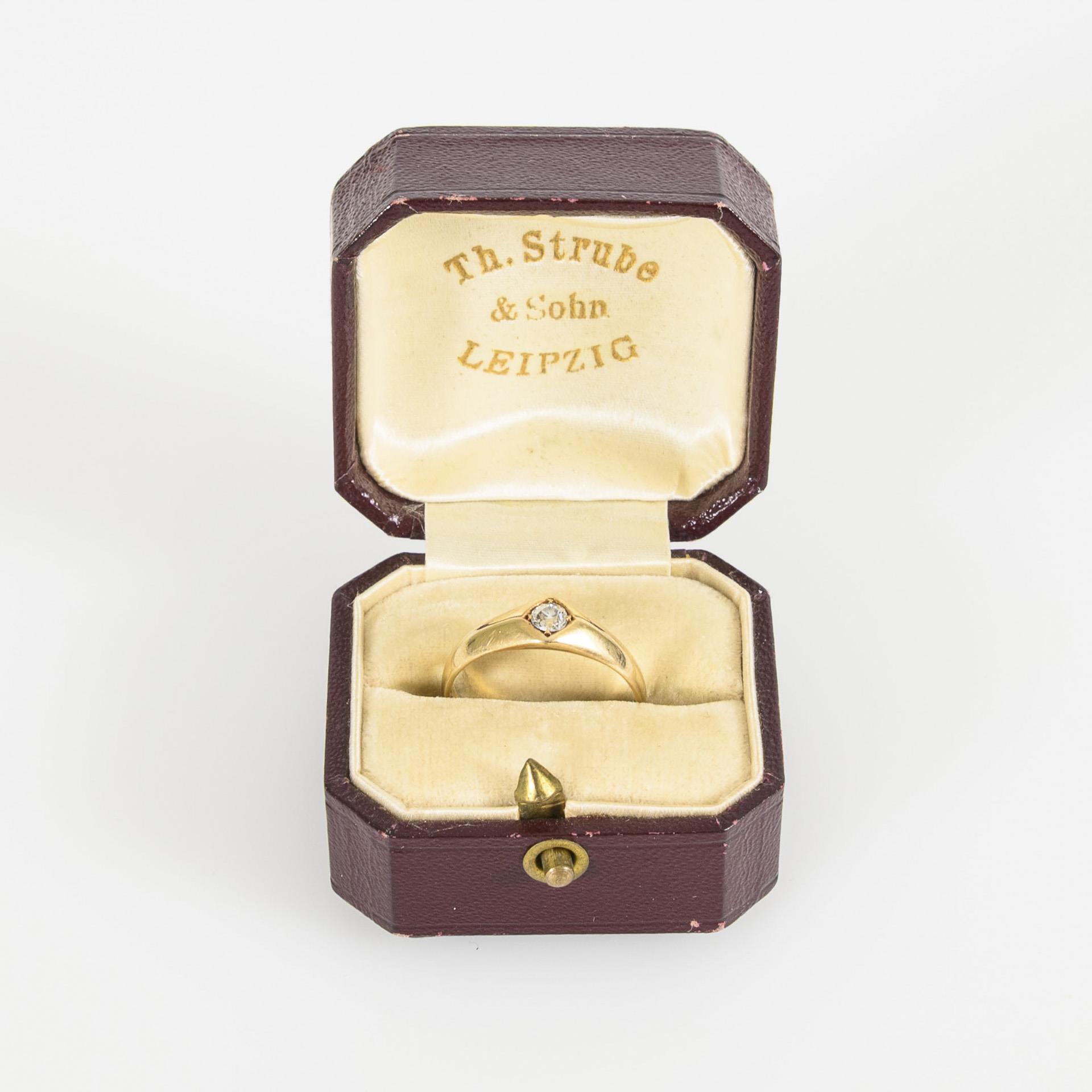 Hallmarked 585 yellow gold. Ring size 56.5, diameter of the old-cut diamond (measured in the setting) approx. 3.33 mm. 2,7 g.