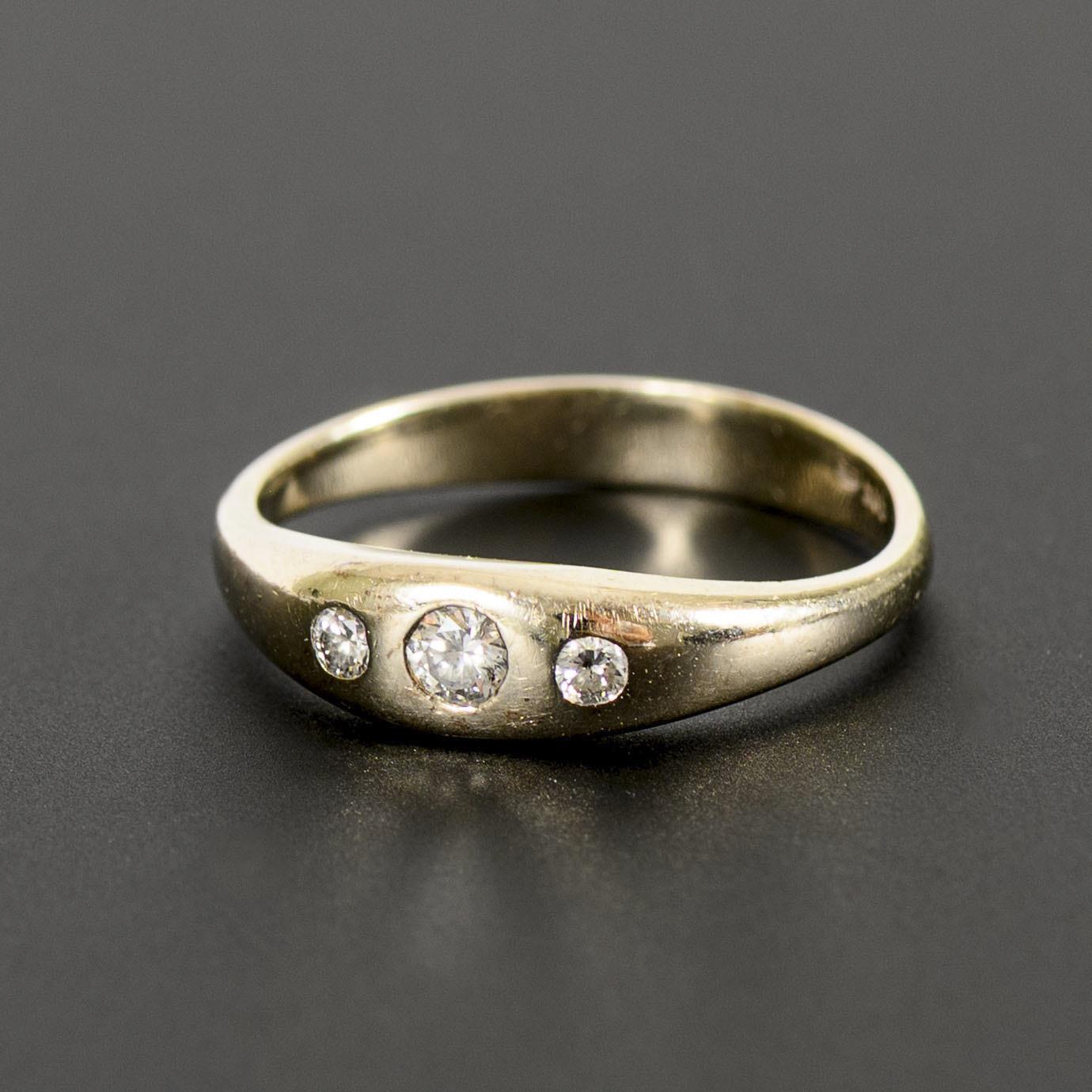 Simple alliance ring with 3 embedded diamonds in the course.