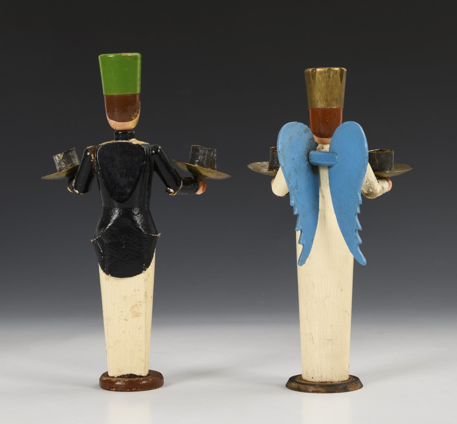 6-flame, blue-white ceiling chandelier, H 31 cm. / Chandelier miner, h 21.5 cm. / White candlestick angel with blue wings, H 20 cm. Significant signs of age, paint defects.