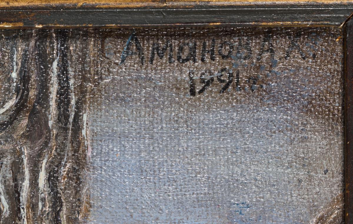 Links oben kyrillisch signiert, verso kyrillisch bezeichnet/betitelt mit Zusatz Moskau.