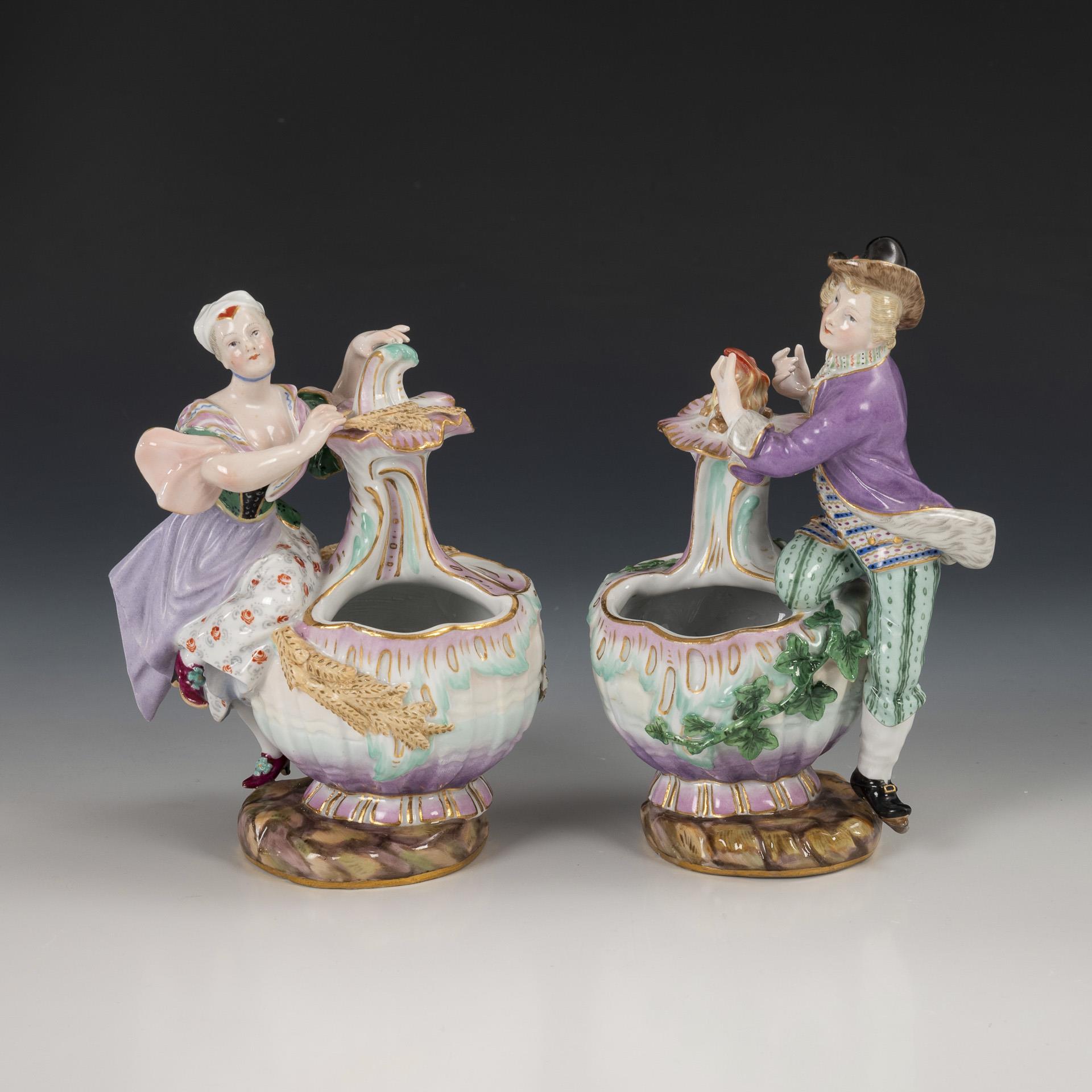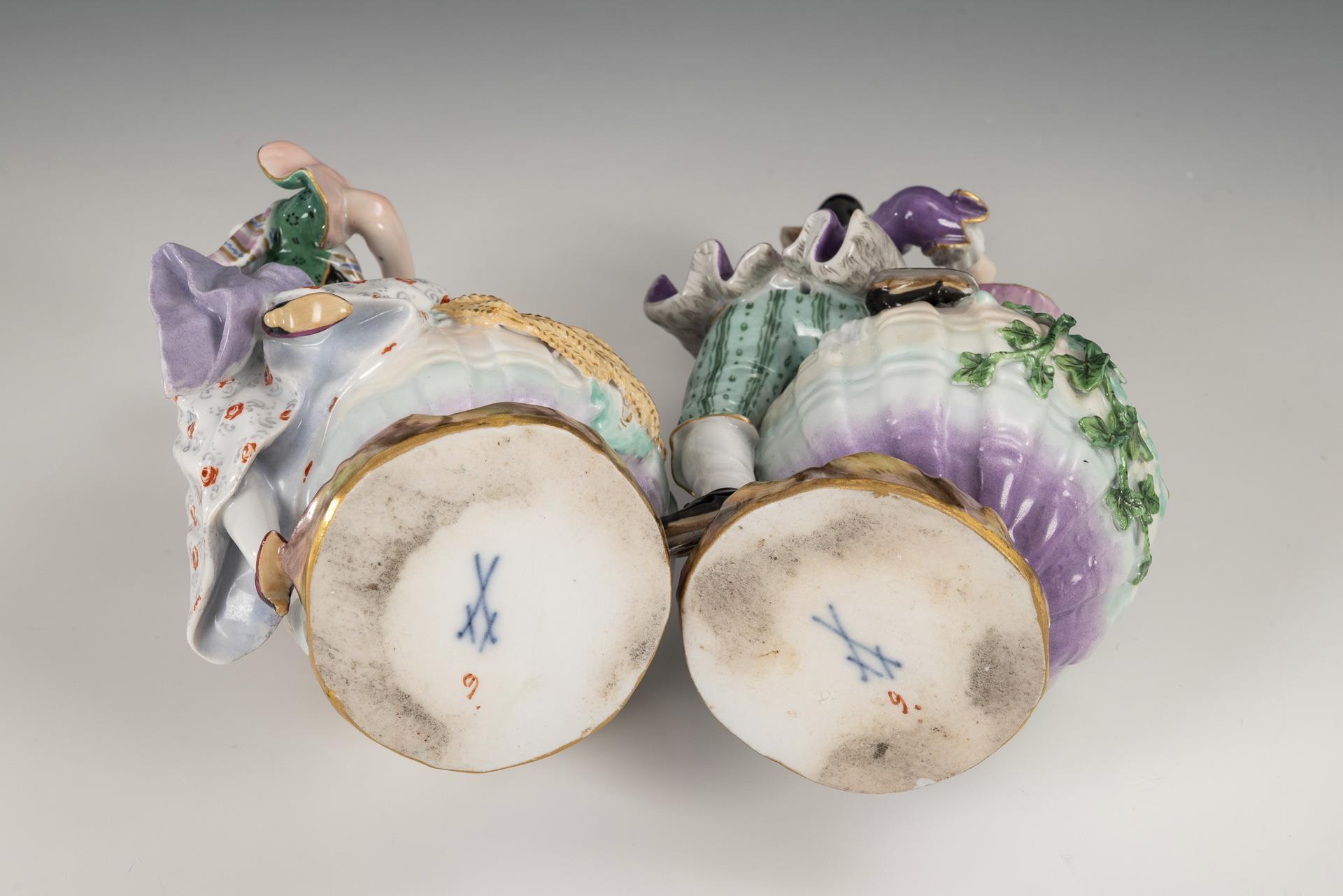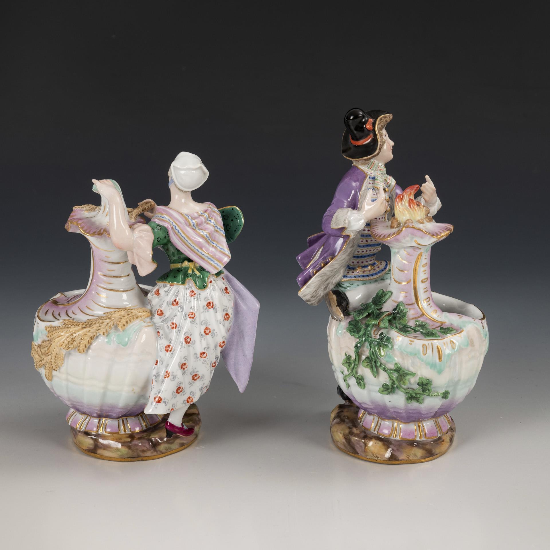 Pair of figurative spice jars as seasonal allegories. Meissen.