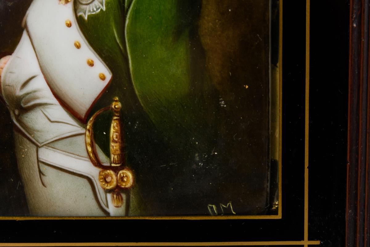 12,5 x 8 cm, im verglasten Holzrahmen 21 x 17,5 cm.