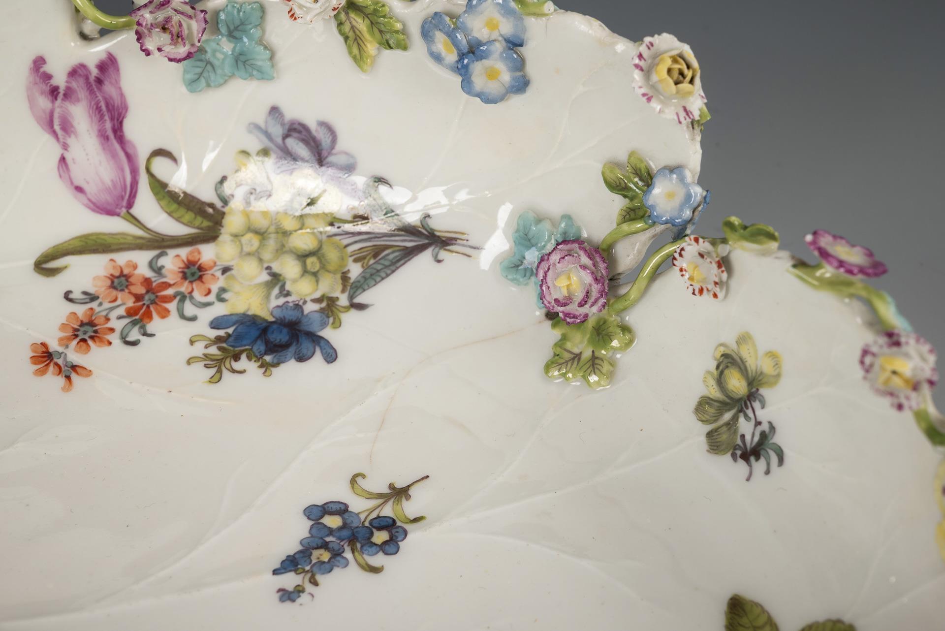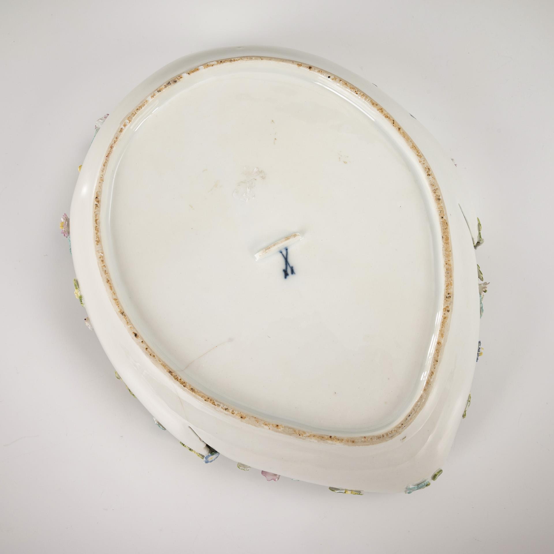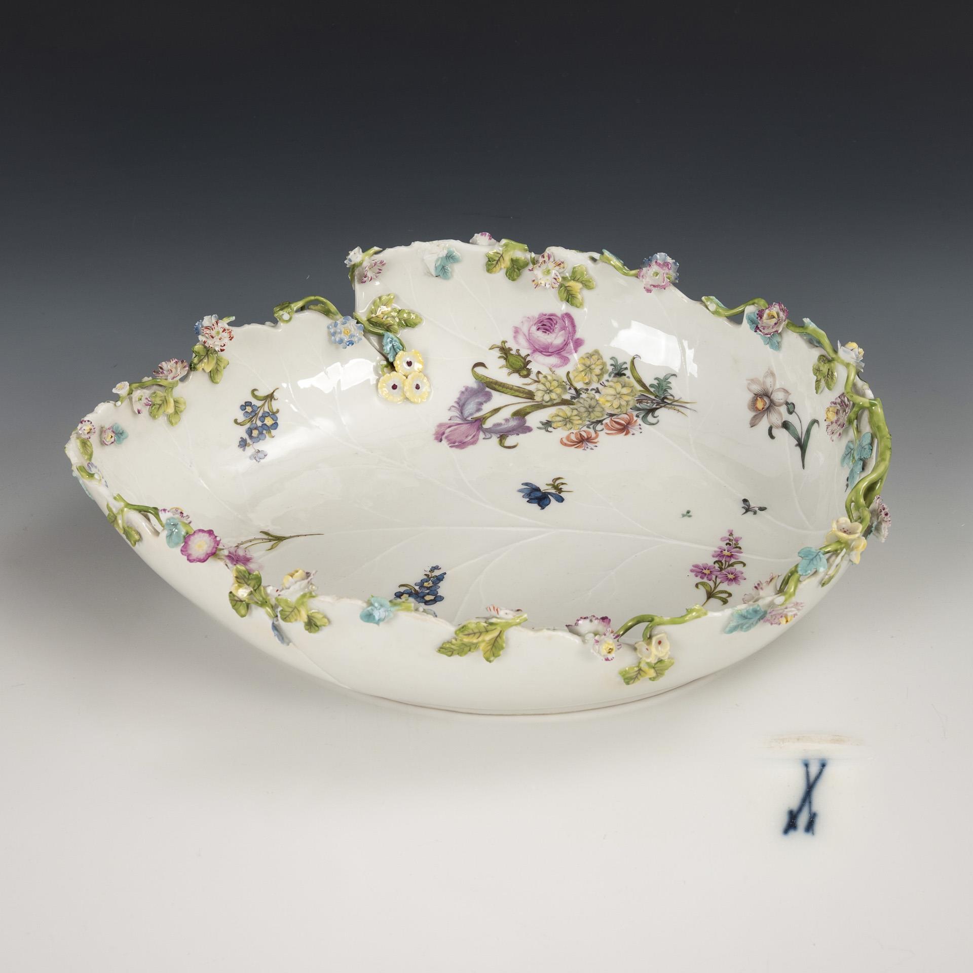 Rare baroque leaf bowl with floral decoration and flower painting. Meissen.