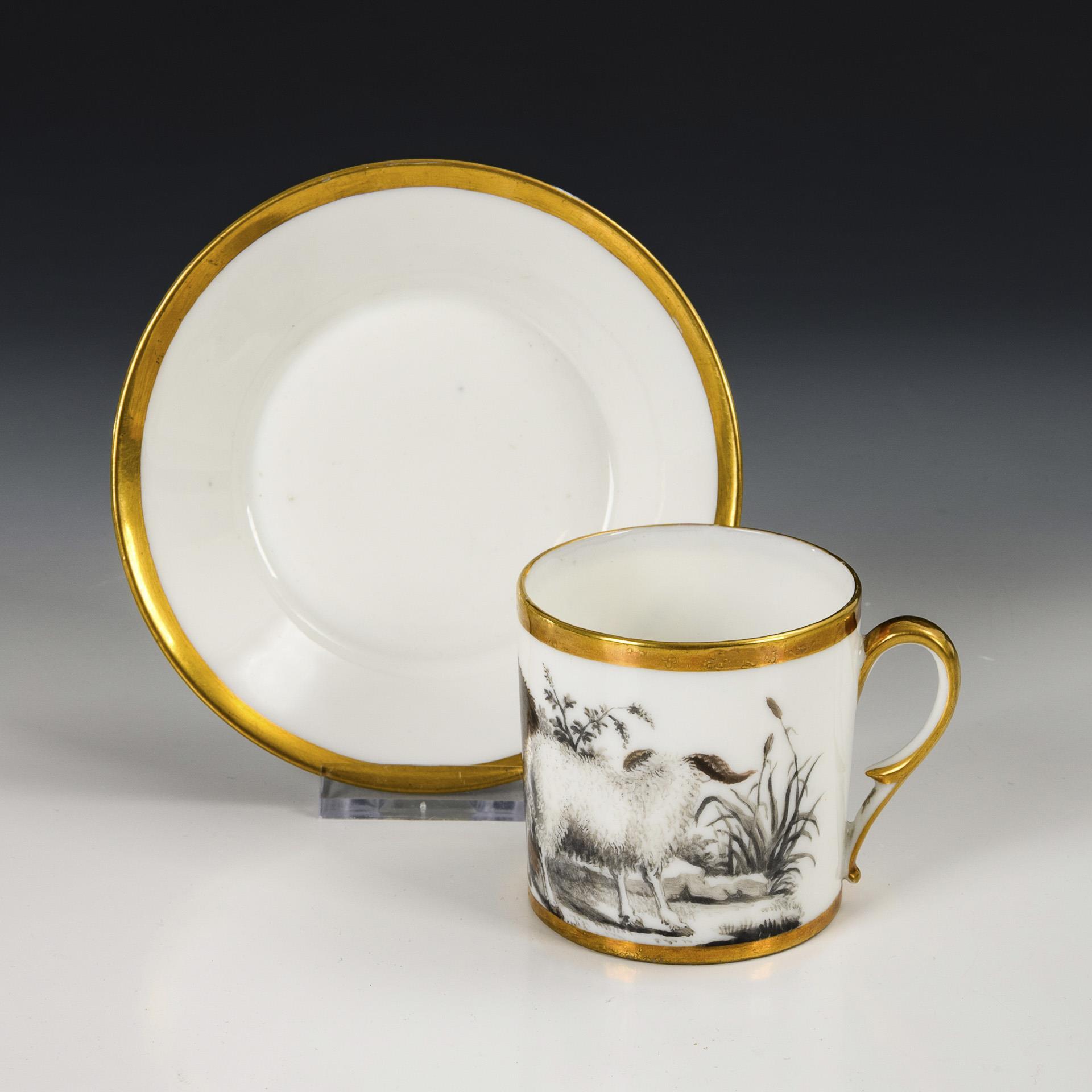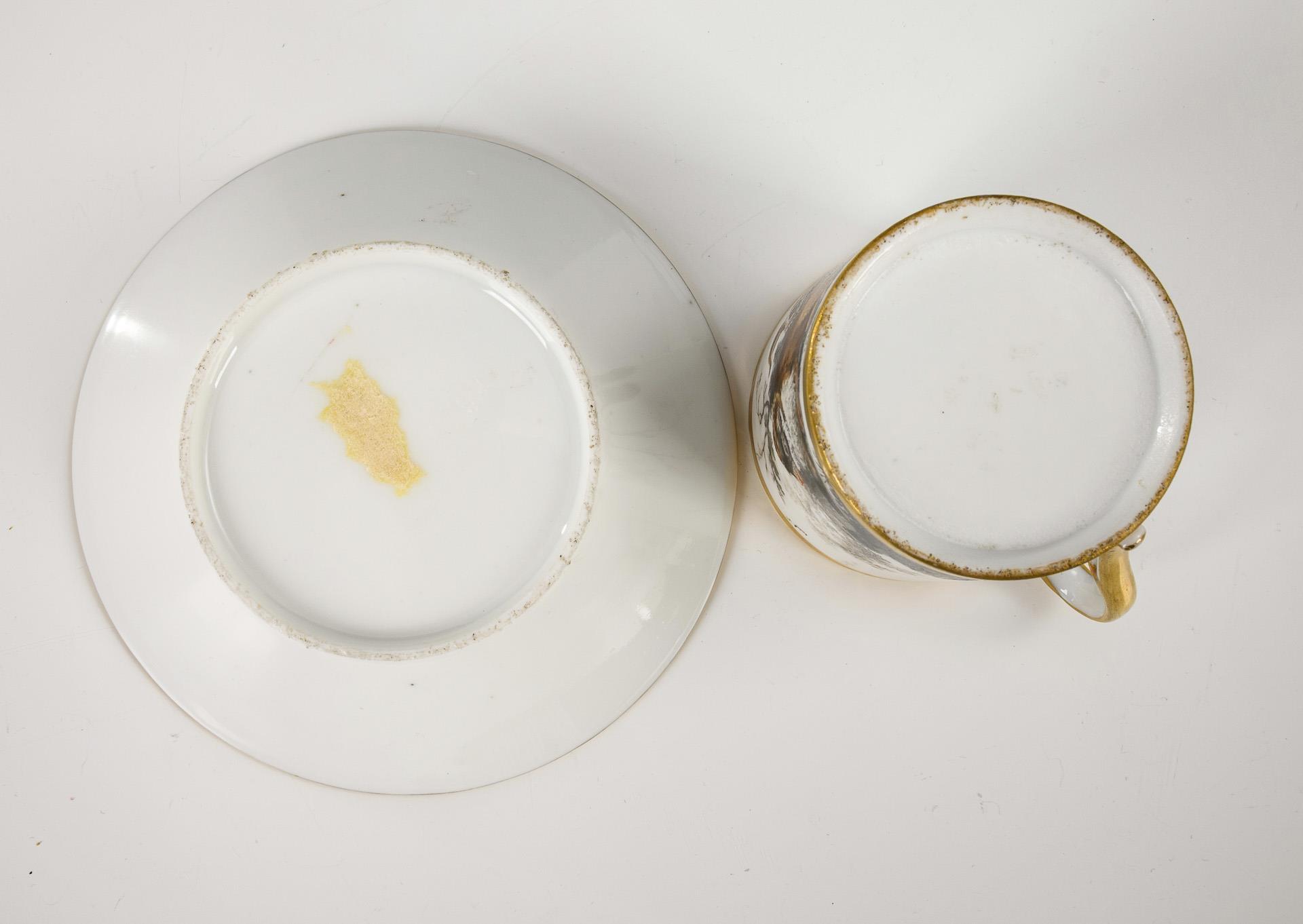 Polychrome painted, decorated with gold. Cup (h 6.5 cm), original saucer (Ø 12.5 cm).