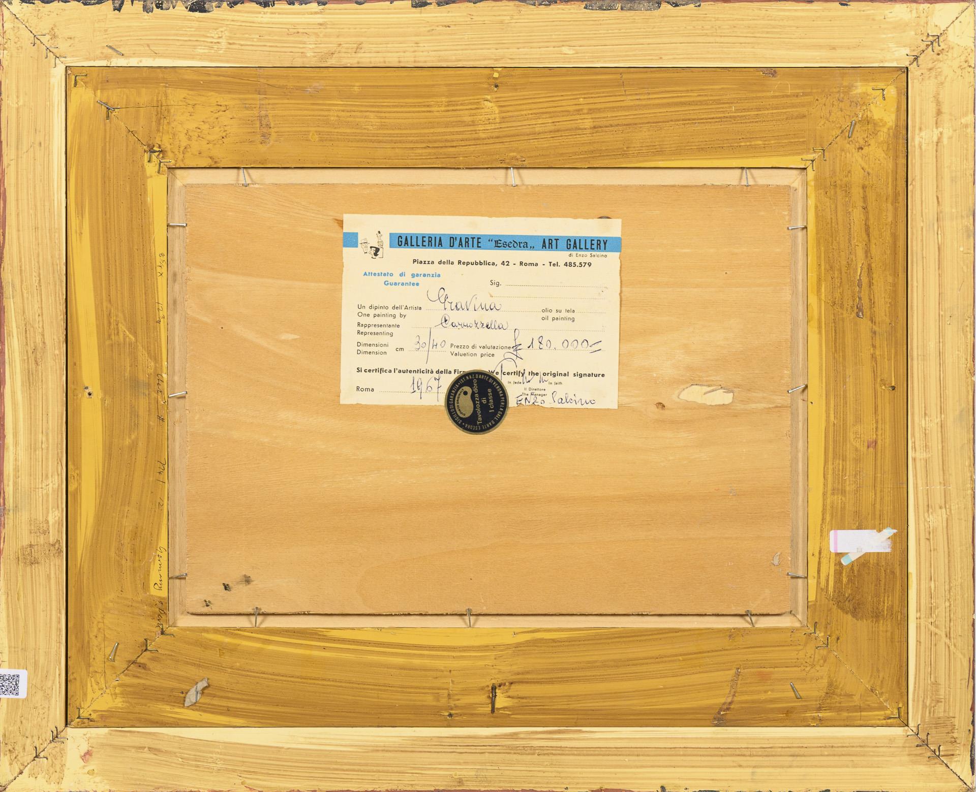 Oil/plywood. Signed lower right, verso on adhesive label of the Galleria D'Arte "Esedra" and inscribed on certificate of the same gallery. 20th century