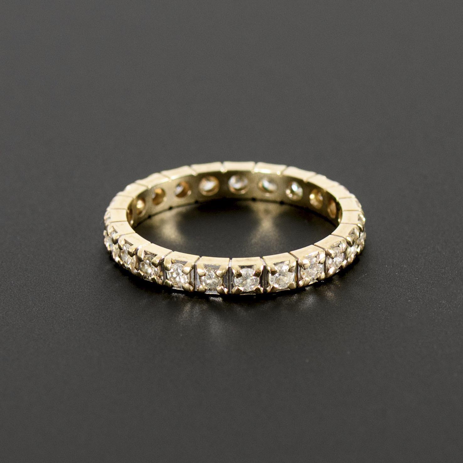Delicate memory ring, set all around with small diamonds, in white gold.