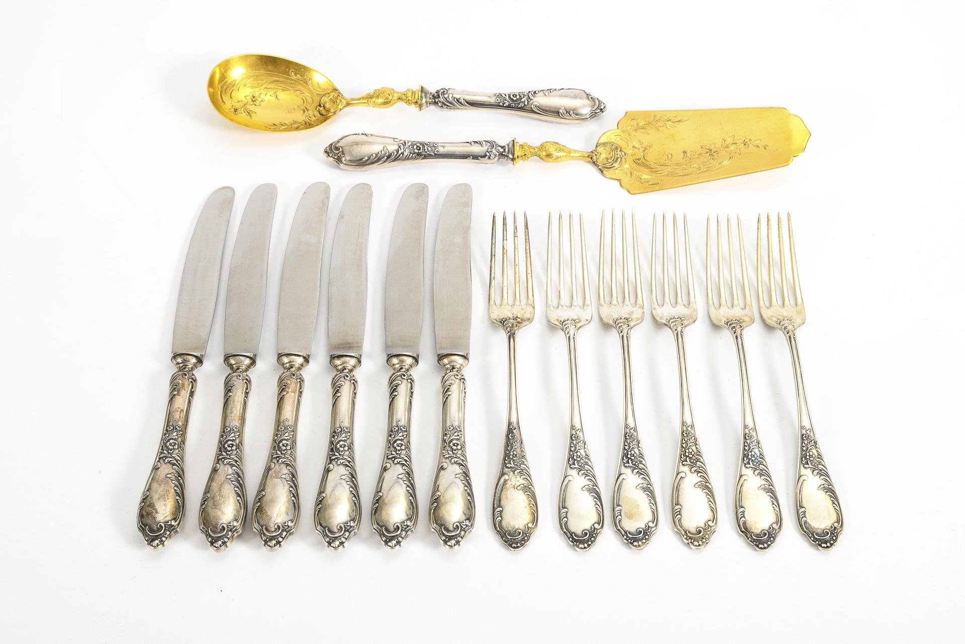 14-piece Gründerzeit style silver cutlery set. Bruckmann & Söhne, Heilbronn.