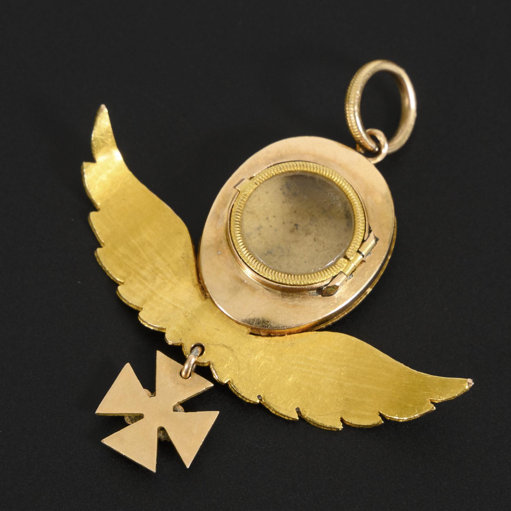 Rare historical medallion pendant with angel wings.