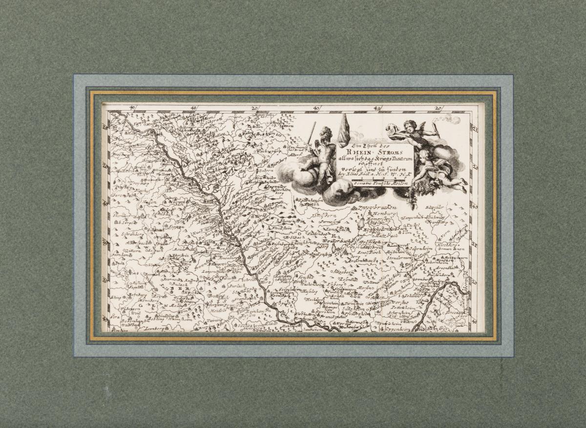 Landkarte von Mainz bis Breisach, Titelkartusche: "Ein Theil des Rhein-Stroms".