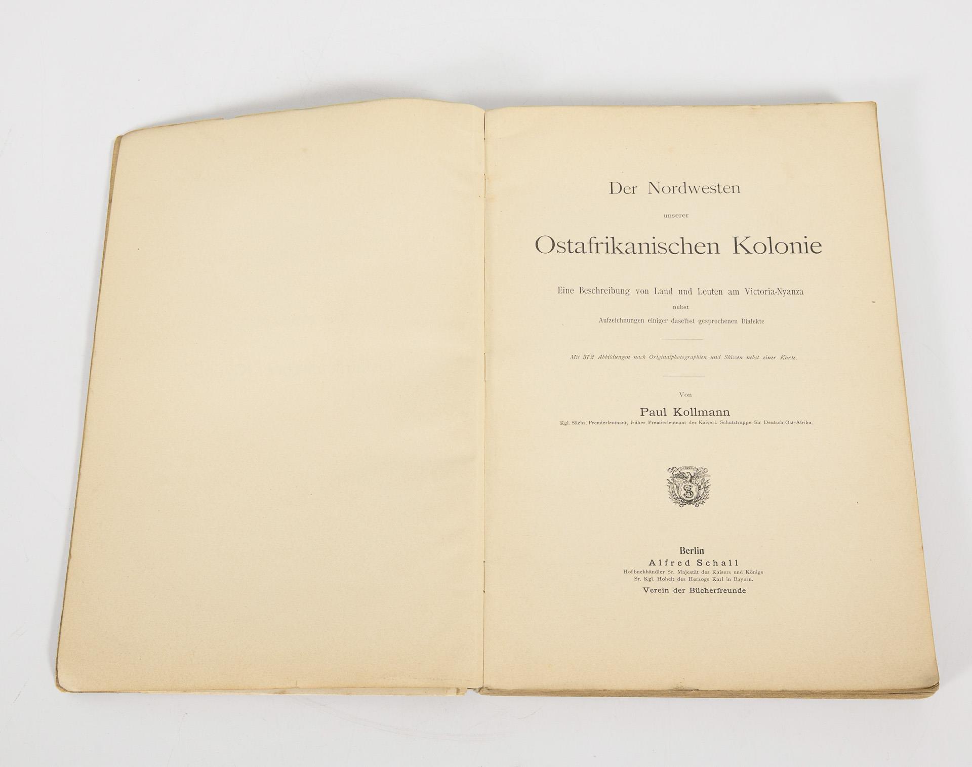 8, 191 pages in brochure binding. Detailed description and illustration of everyday objects, some photographic illustrations and a dictionary of the following languages: Ki-Karagwe; Ki-Swaheli; Ki-Ussukuma; Ki-Ussindja; Ki-Uganda; Ki-Ukerewe and Ki-Uha. / Map: "Dr. F. Stuhlmann's Aufnahmen im Gebiet des Albert- und Albert-Edward-sees während der Emin Pascha Expedition ... 1892" Drawn by Max Moisel, 1901. Binding somewhat torn.