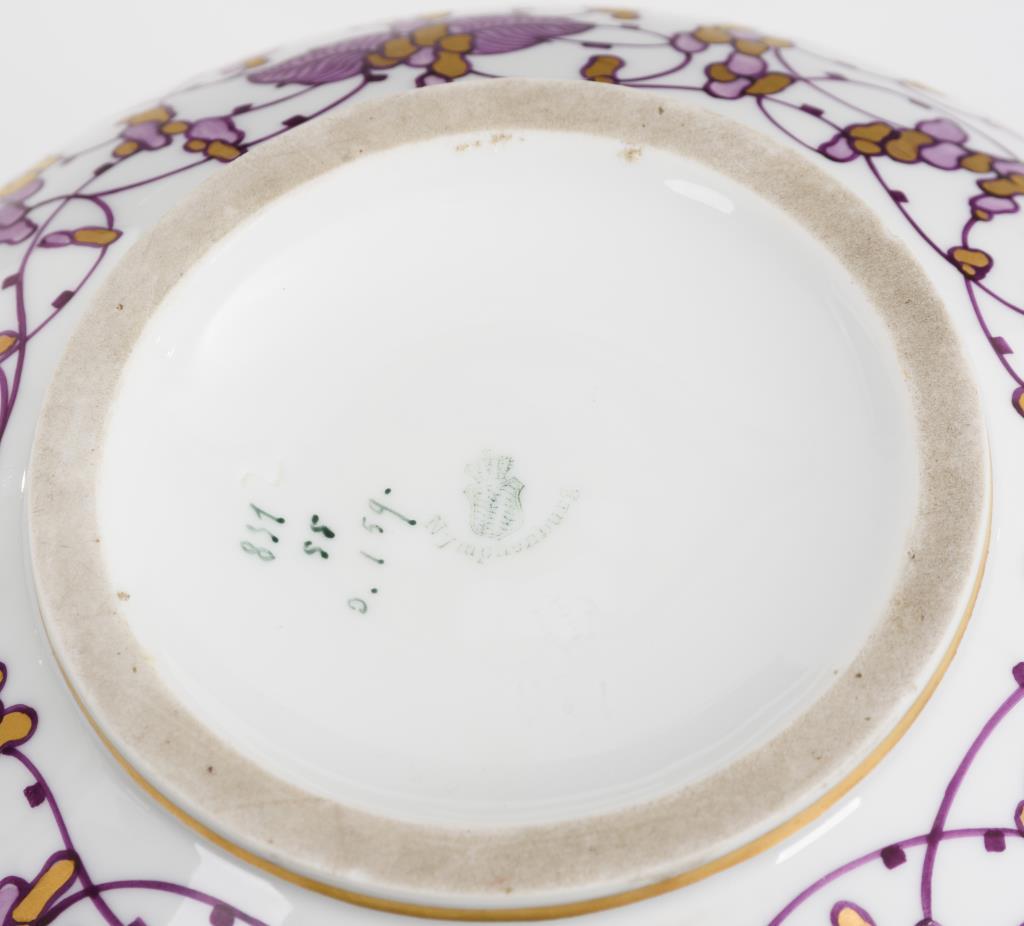 In Violett und Gold bemalt.H 18 cm.