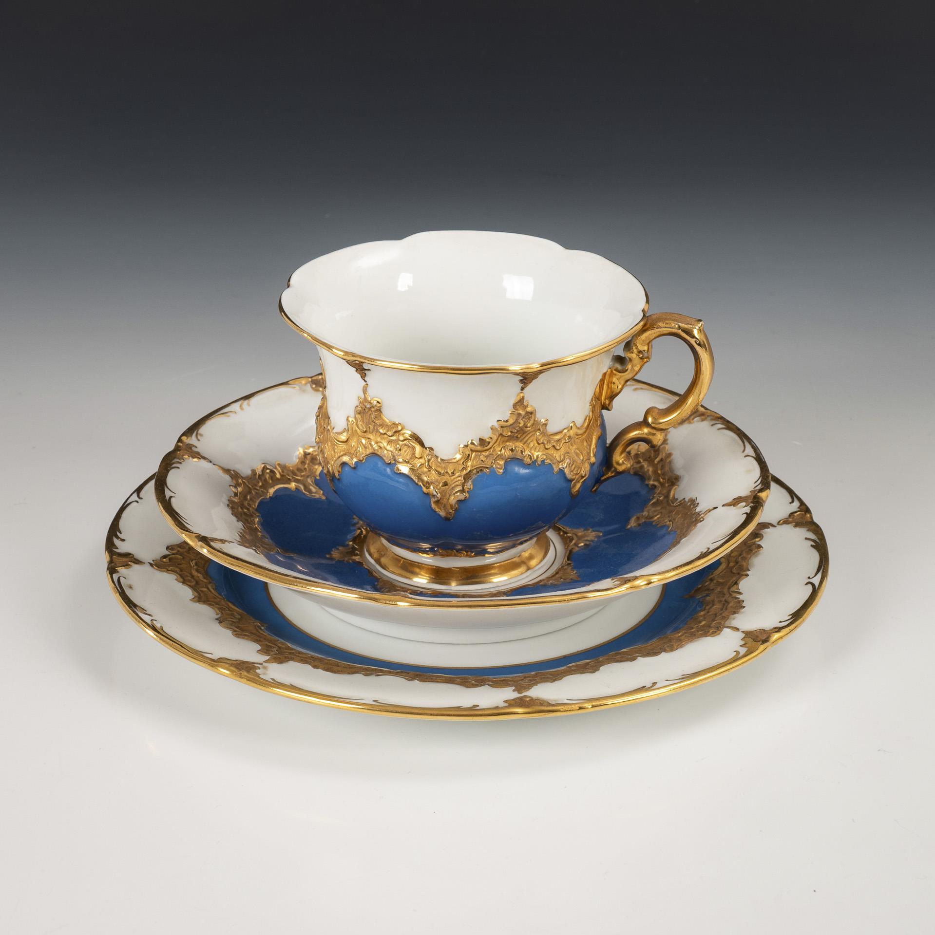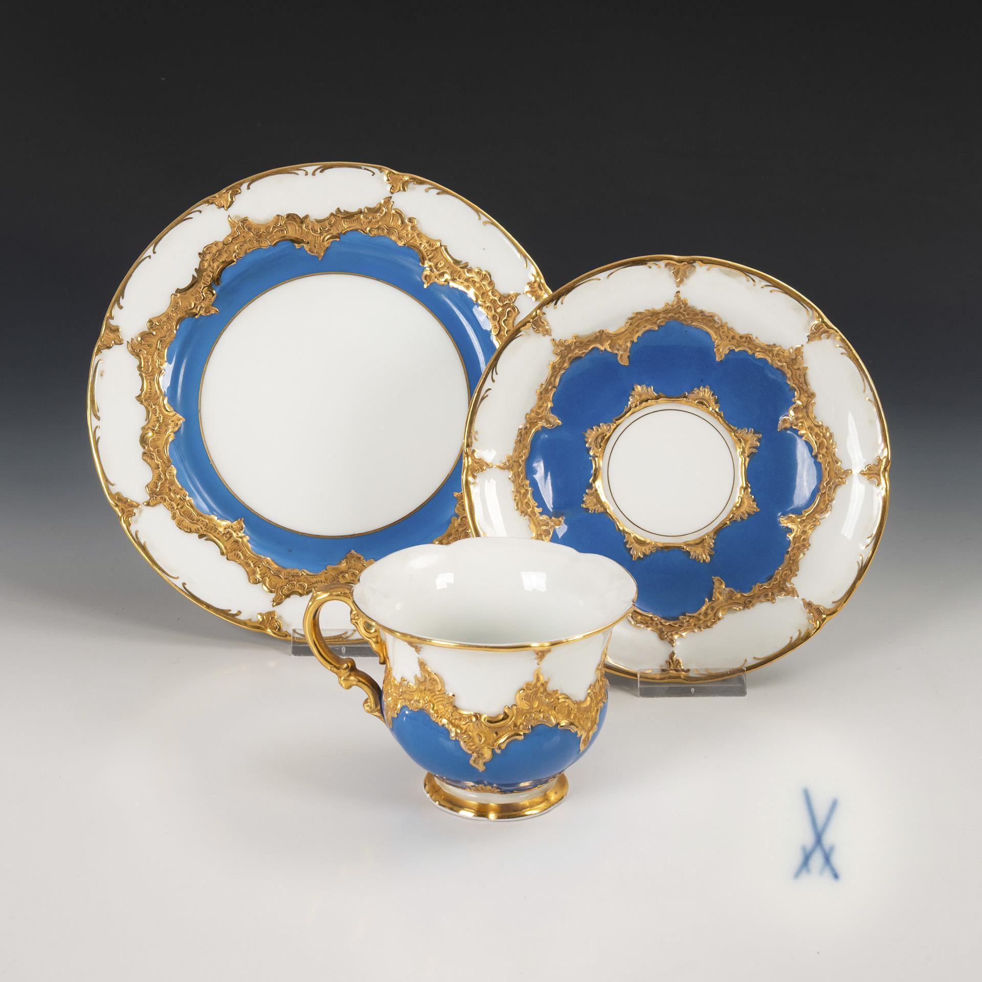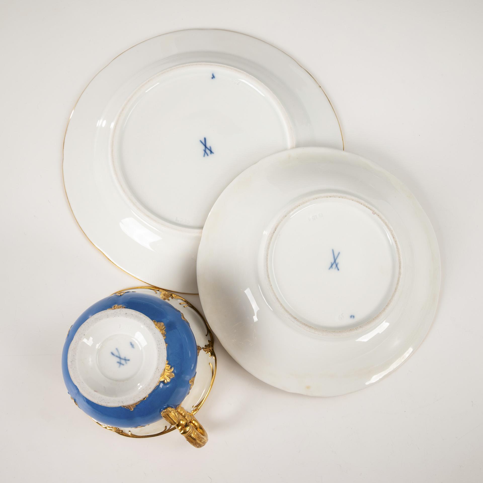 Cup (h 7.5 cm), saucer (Ø 16.5 cm) and cake plate (Ø 19.5 cm).