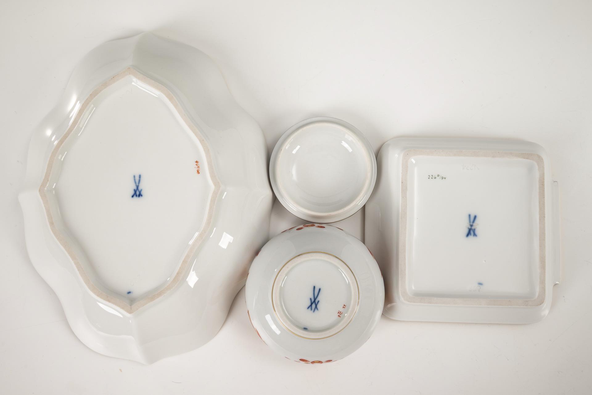 1x quatrefoil bowl with flower painting (L 18.5 cm). / 1x square "Indian green" ashtray (11 x 10.5 cm). / 1 small box "Red Dragon" (Ø 7 cm)