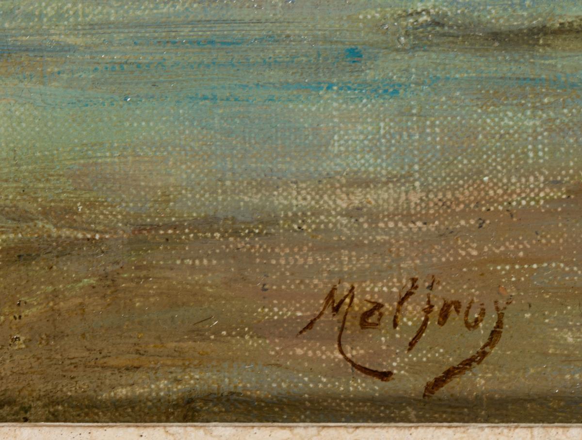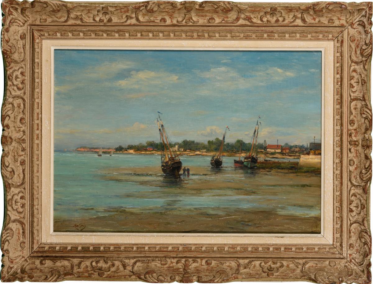 MALFROY-SAVIGNY, Henri de (1895 Martigues - 1942) Schiffe an der Küste Öl/Leinwand. Frankreich. Links unten signiert. 38 x 55 cm. Gerahmt: 56 x 73 cm (Impressionistenrahmen). Die Fischerboote bei Ebbe am Strand im Sonnenschein. Französischer Landschaftsmaler, stellte in Paris aus. Literatur: Vollmer..