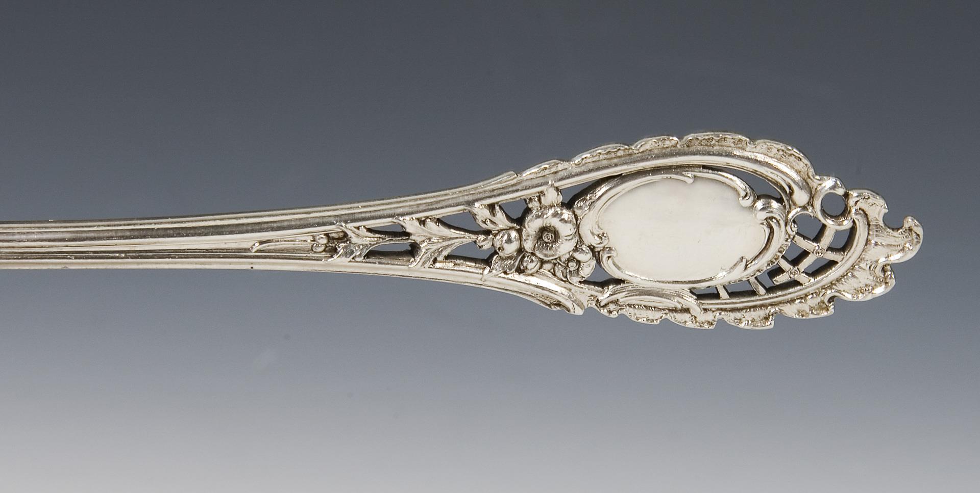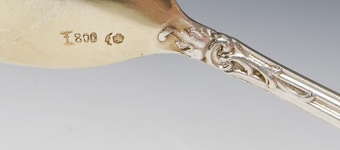 Floral relief on both sides, open-work spoon, hallmarks: Crescent and crown, fineness, maker's mark.