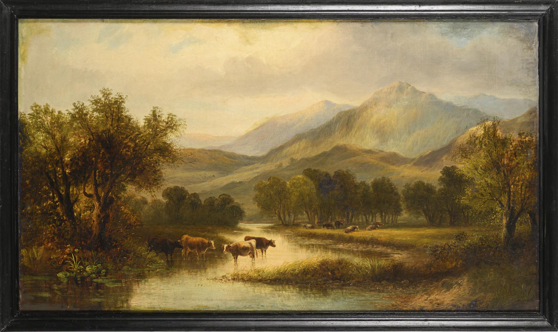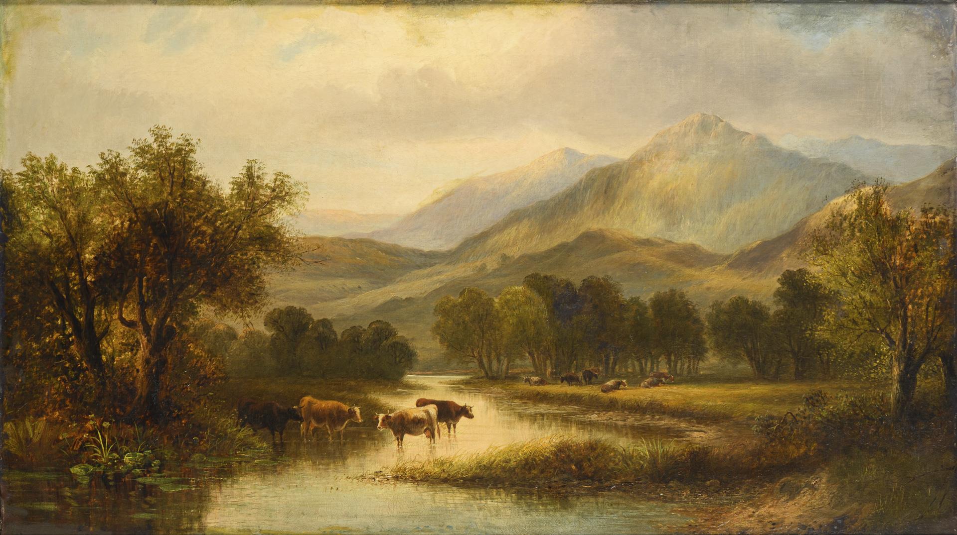 Scottish landscape with herd of cattle