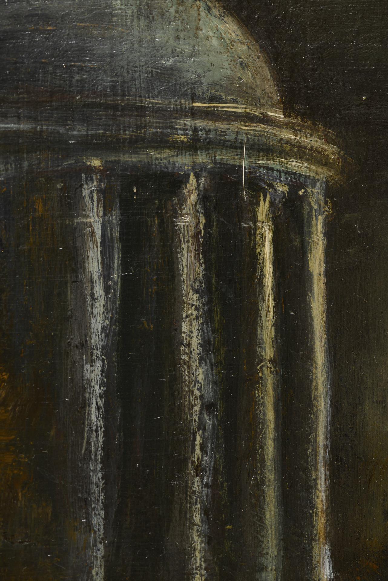 Landscape with round temple and full moon