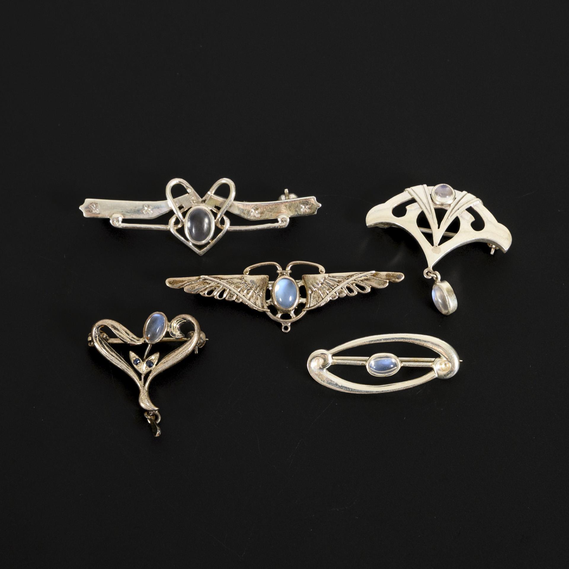 5 brooches in Art Nouveau design.