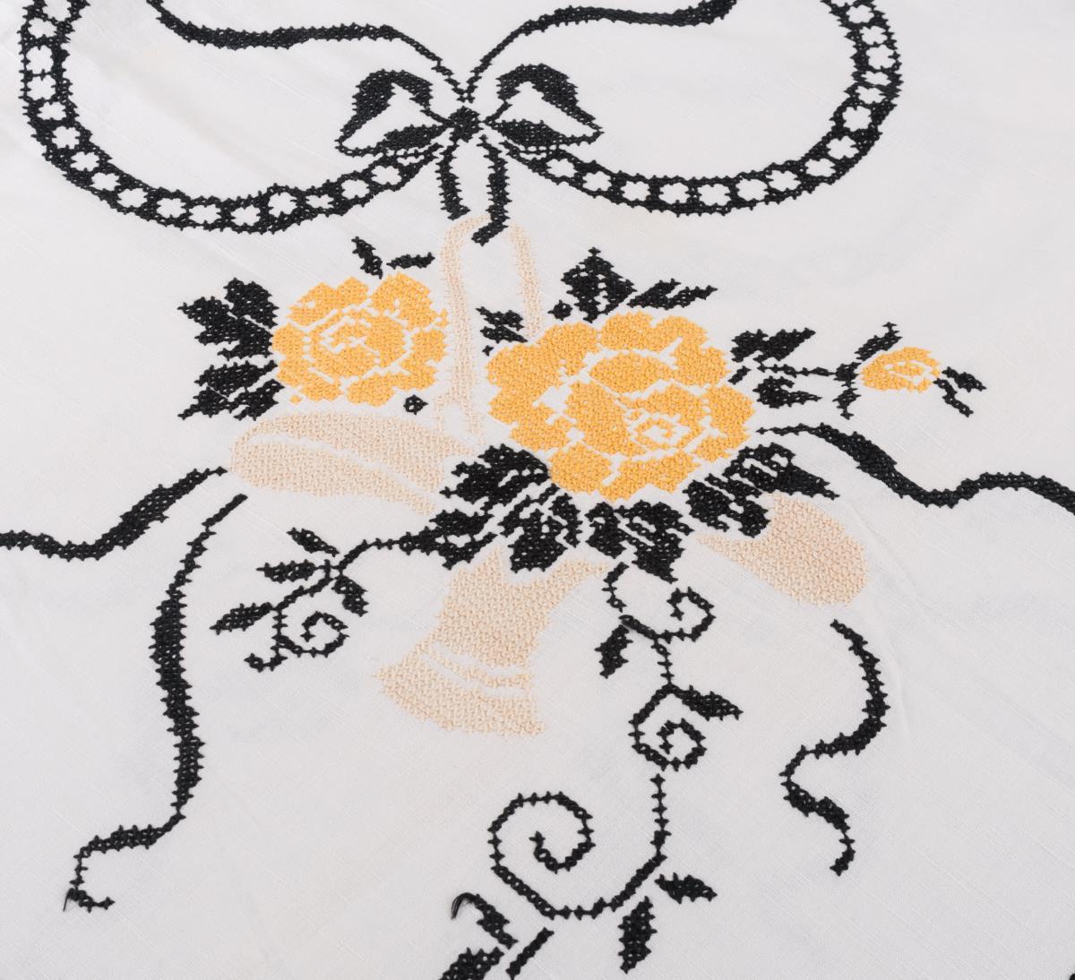 Rosenmuster in schwarzem und gelben Kreuzstich.