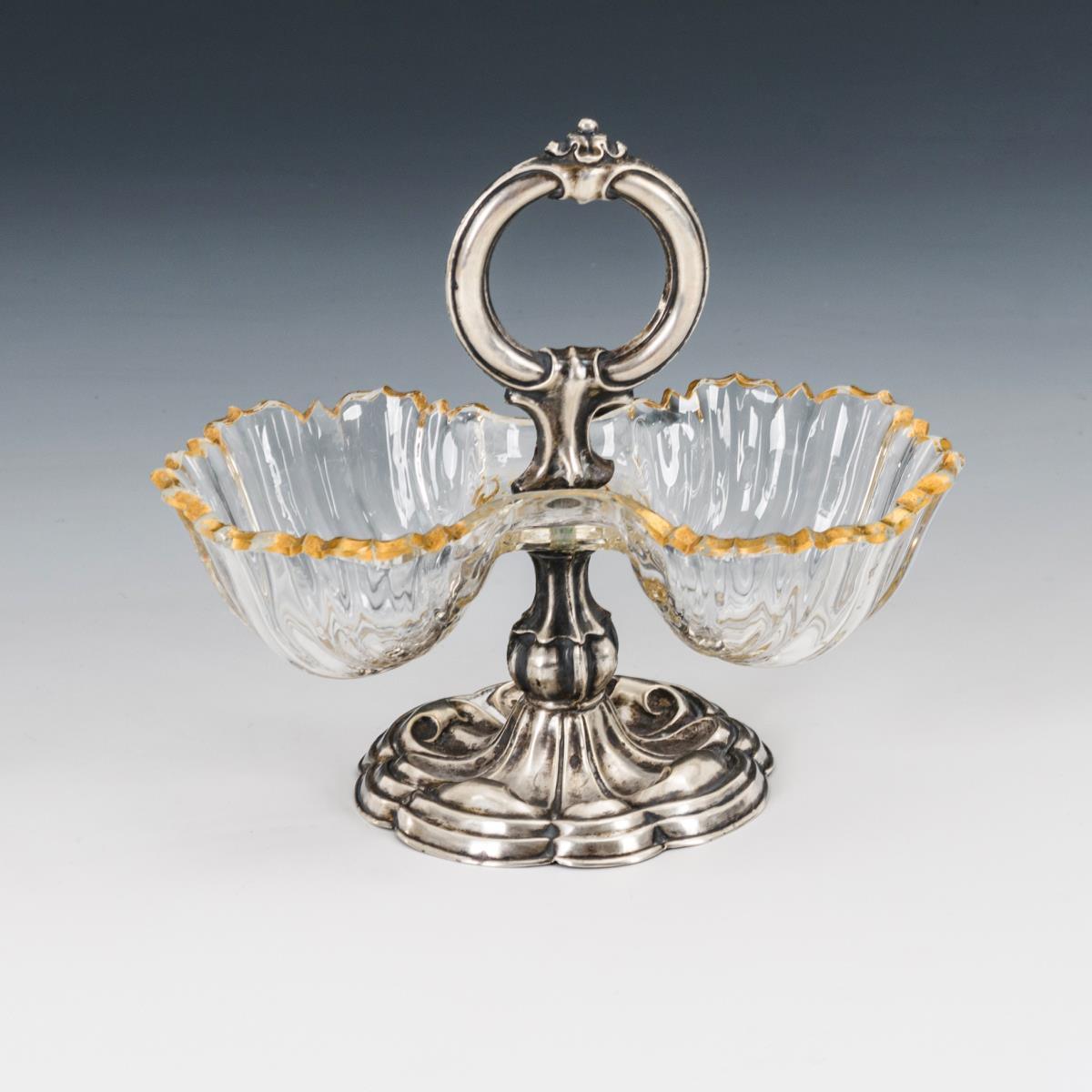 Gold minimal berieben, winzige Bestoßungen am Glasrand, Silberfuß mit kleinem Riss und Lötstellen.