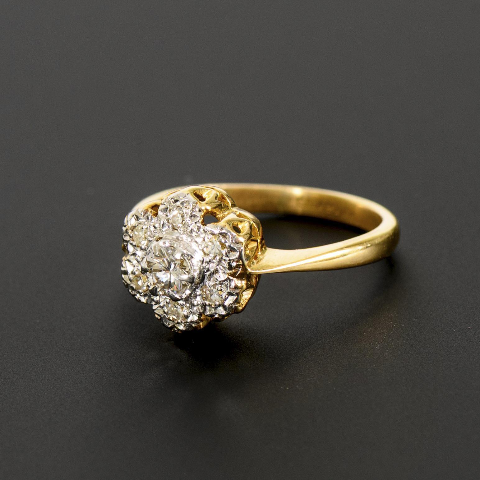 Ring with brilliant-cut diamonds in the shape of a flower.