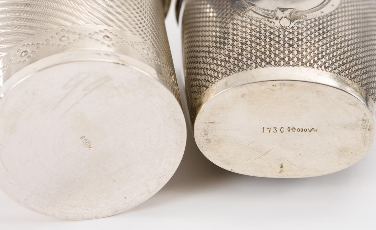 Beide mit Feingehalt 800 gestempelt, 1x mit Halbmond/Krone/Firmenzeichen.