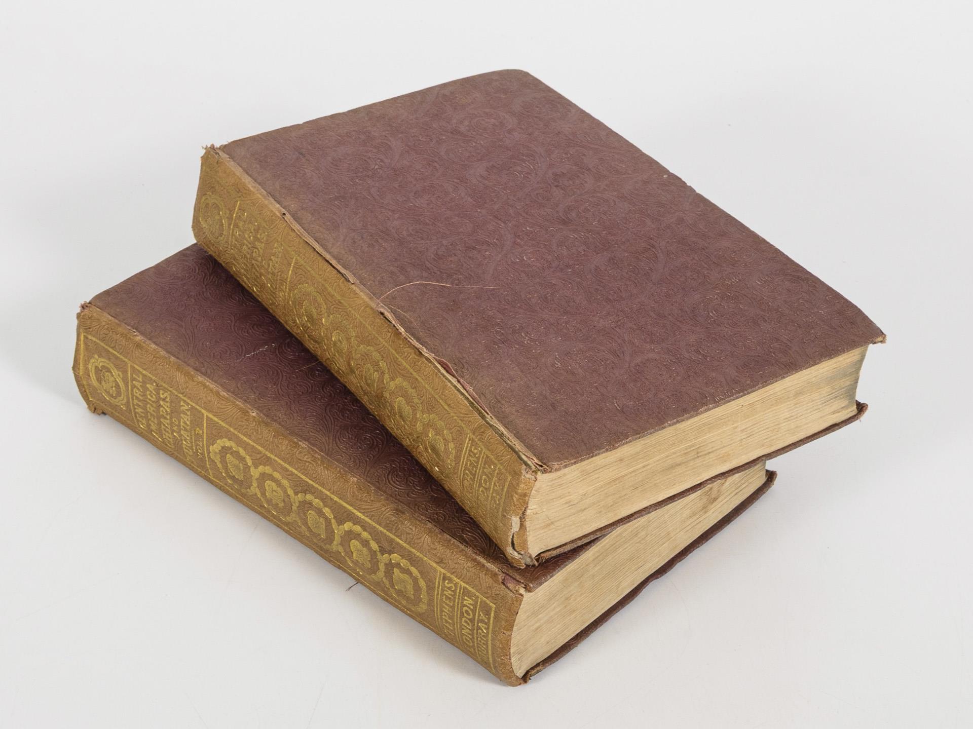 8, folding map, 424 pages /7, 474 pages with numerous illustrations. In embossed cardboard binding. One binding defective, joints loose in the other volume, block somewhat foxed, but otherwise good, signs of wear.
