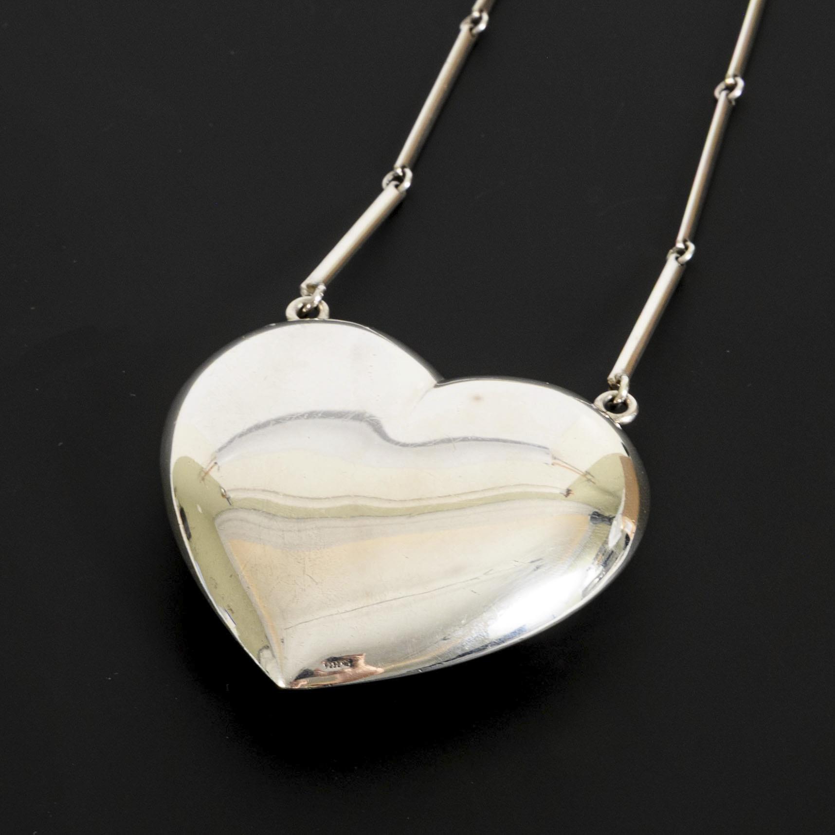 Hallmarked silver 925. Chain length 75.0 cm, the heart max. approx. 69.63 x 64.34 mm. 73,1 g.