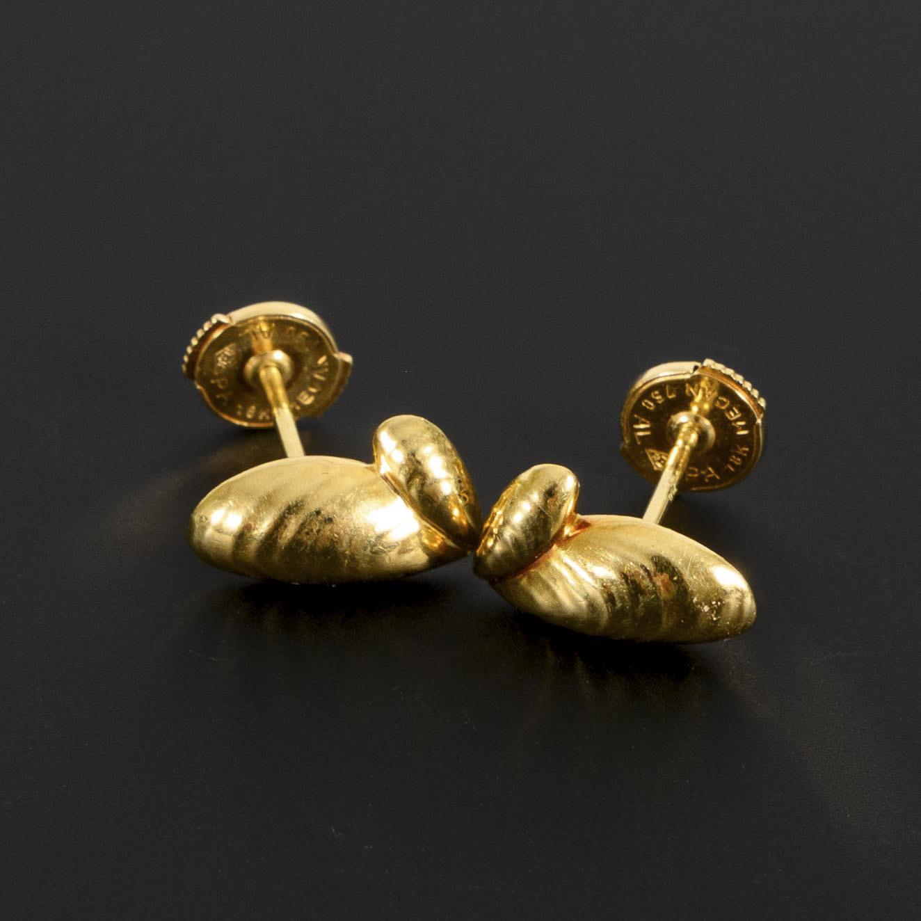 Each hallmarked 750 yellow gold. Max. approx. 11.75 x 8,.17 mm. 3,8 g.