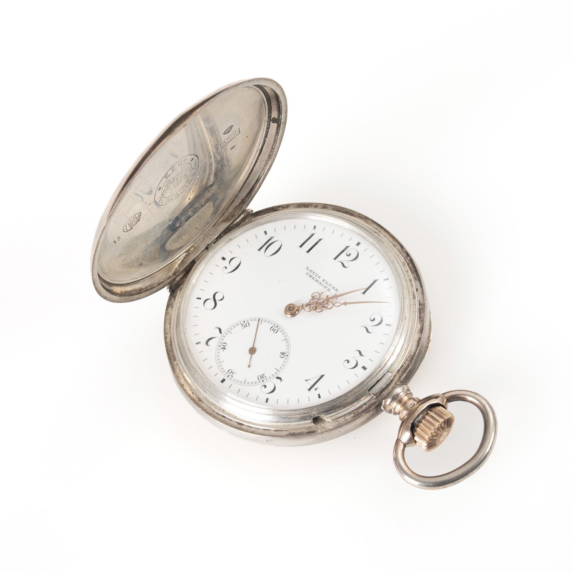 Silver longcase clock "Louis Kluge Chemnitz". Longines.