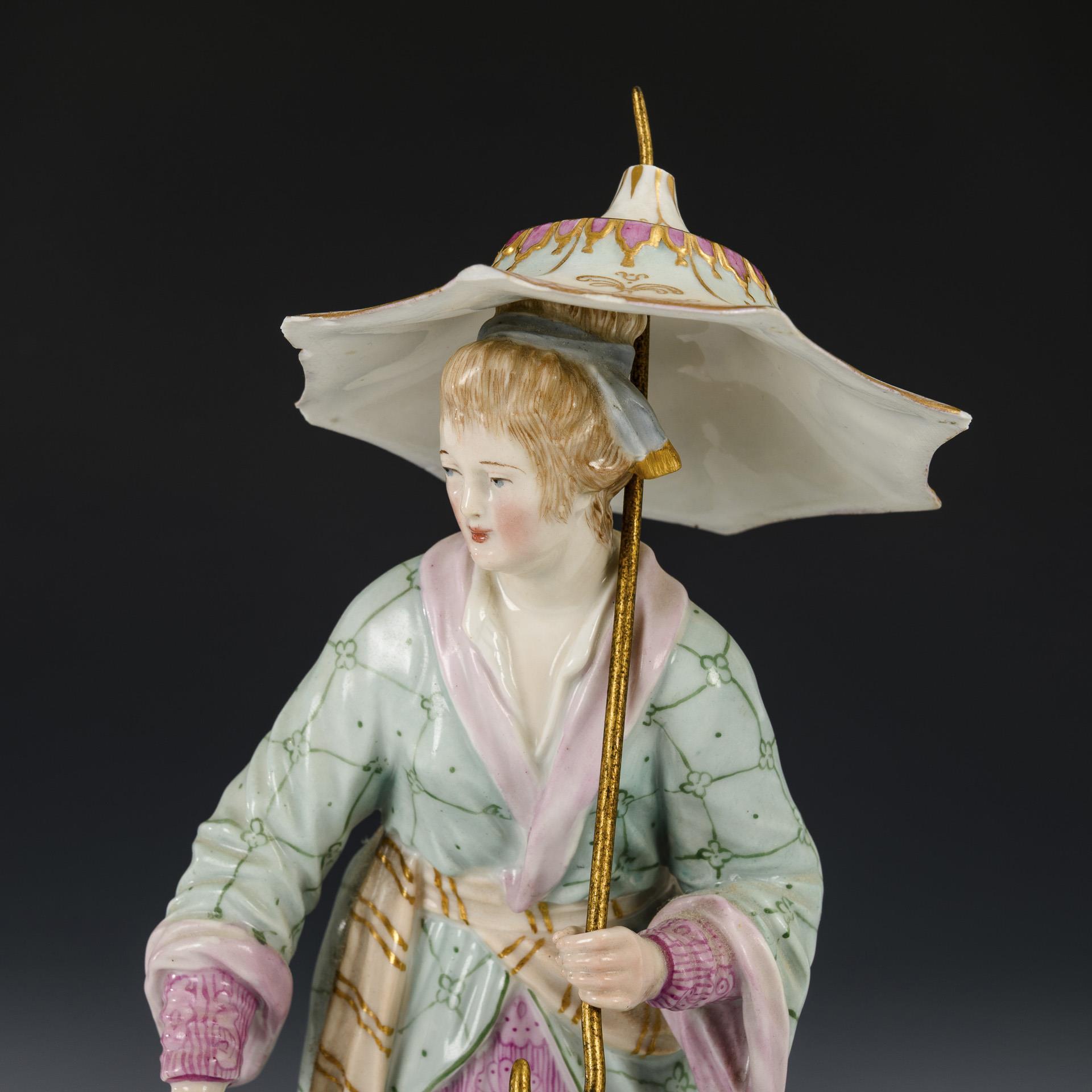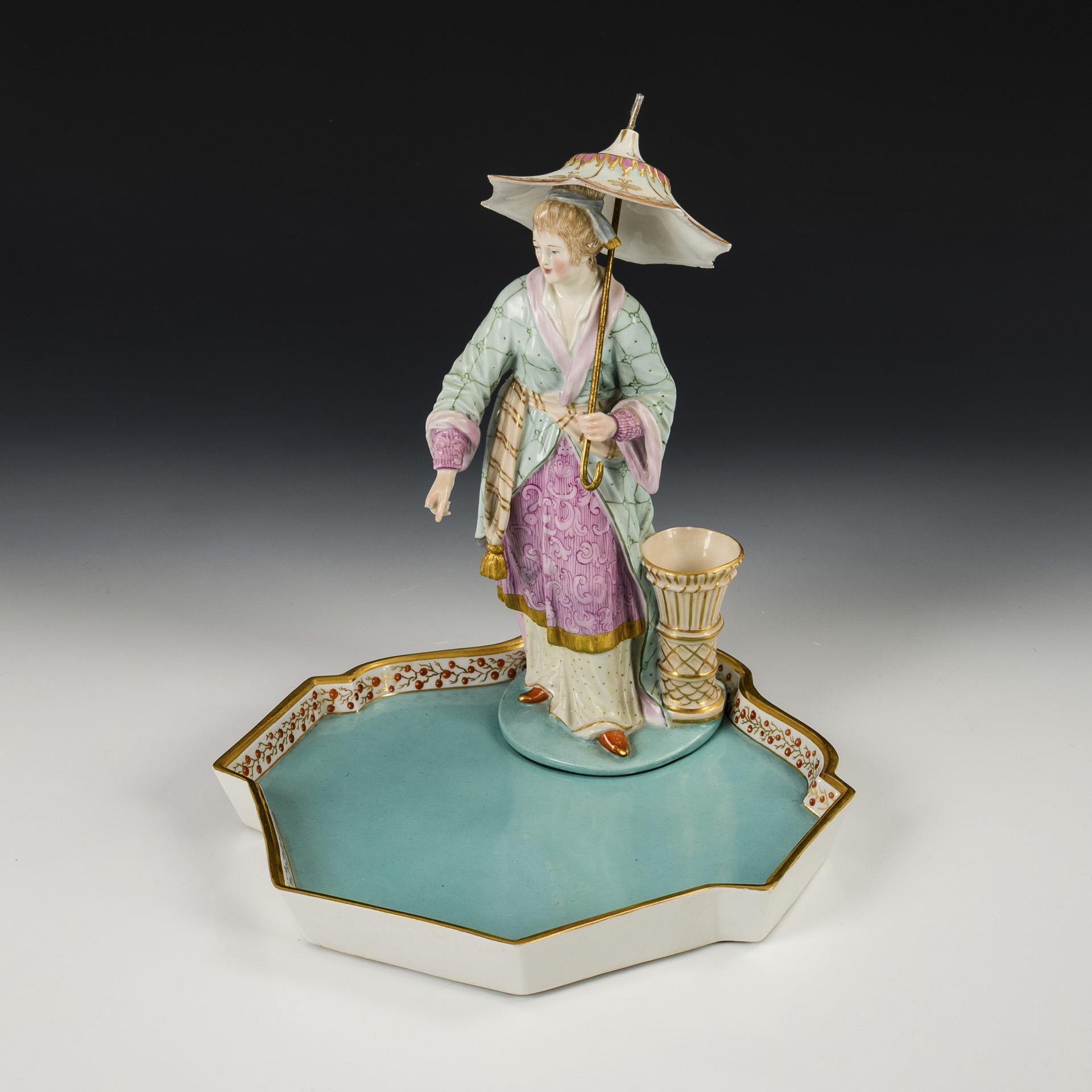 Chinese woman with umbrella on tray. KPM Berlin.