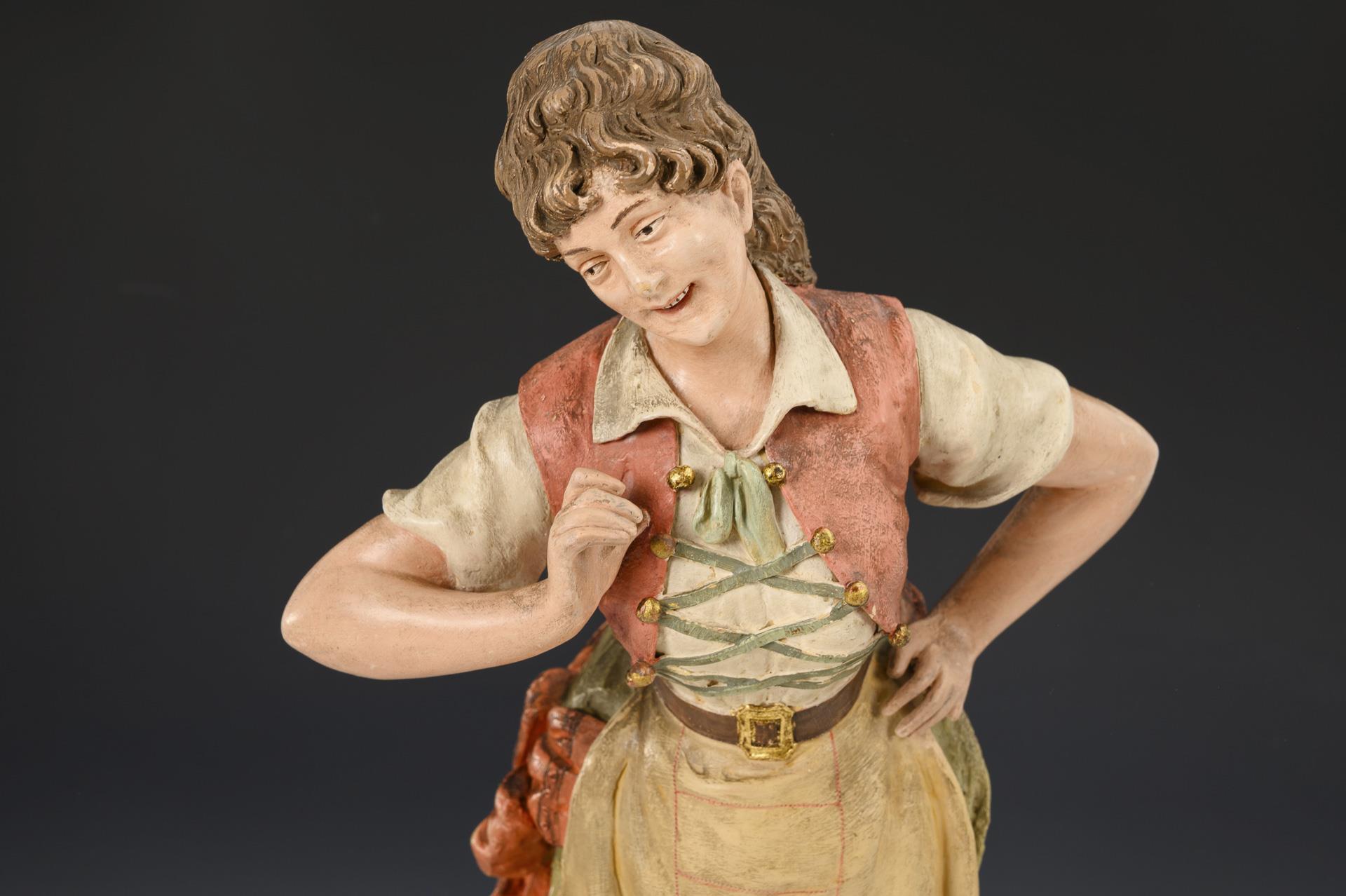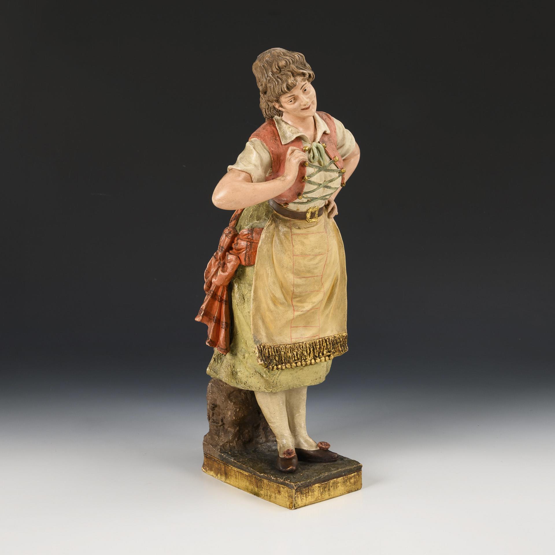Early female Goldscheider genre figure, so-called "Viennese type". Viennese manufactory Friedrich Goldscheider.