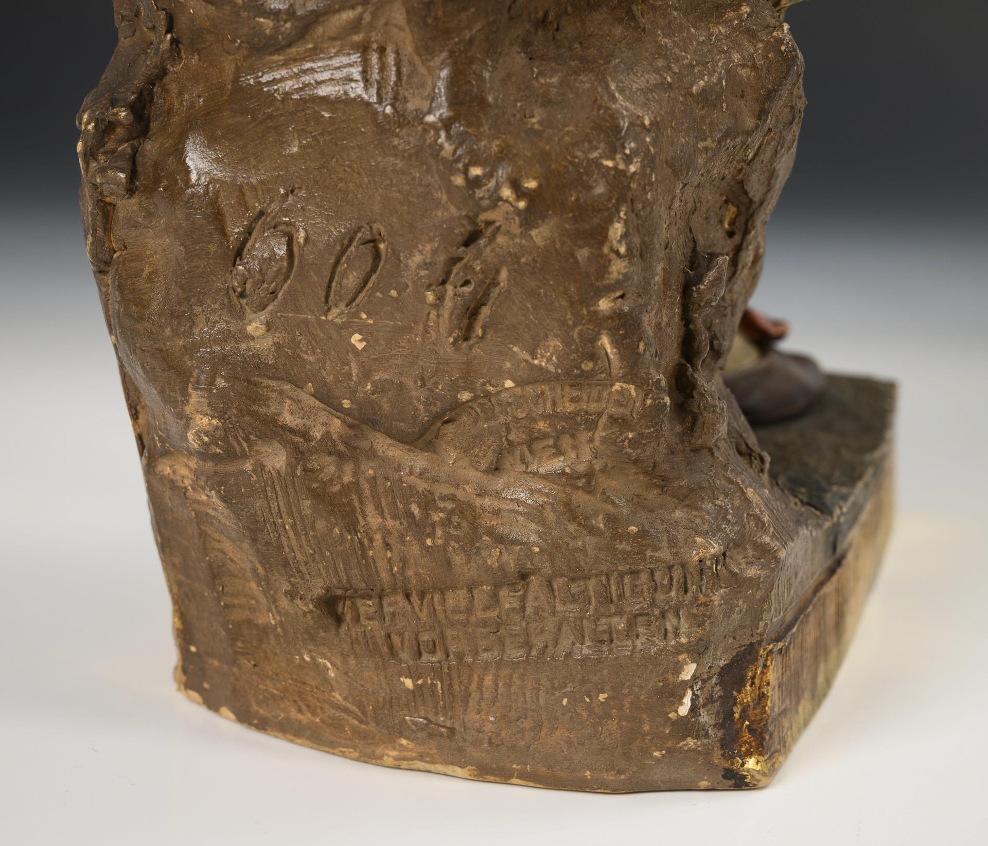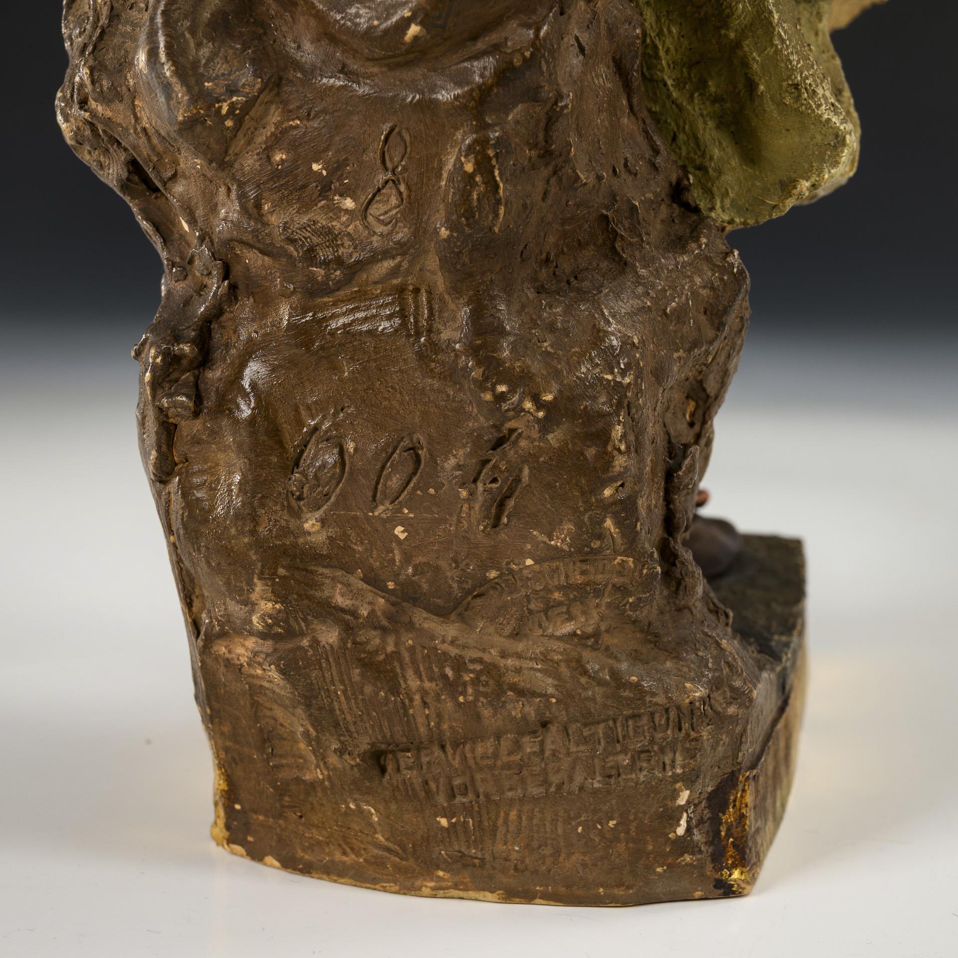 Terracotta, matt color glazed, partly gold-decorated. H 39.5 cm. 2.3 kg.