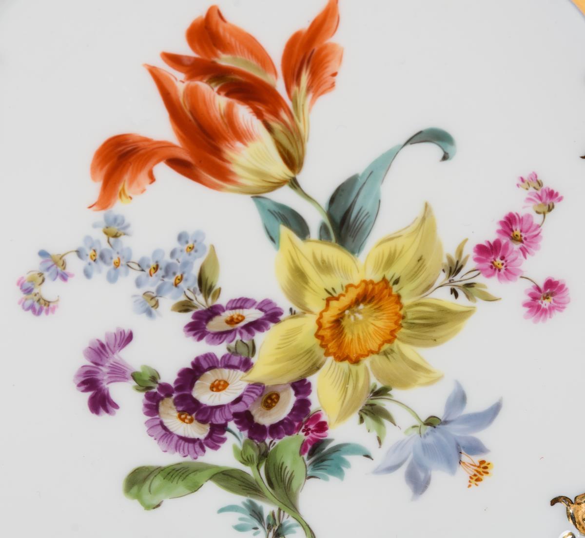 Teilfond, polychrome Blumenmalerei. Ý 29 cm.