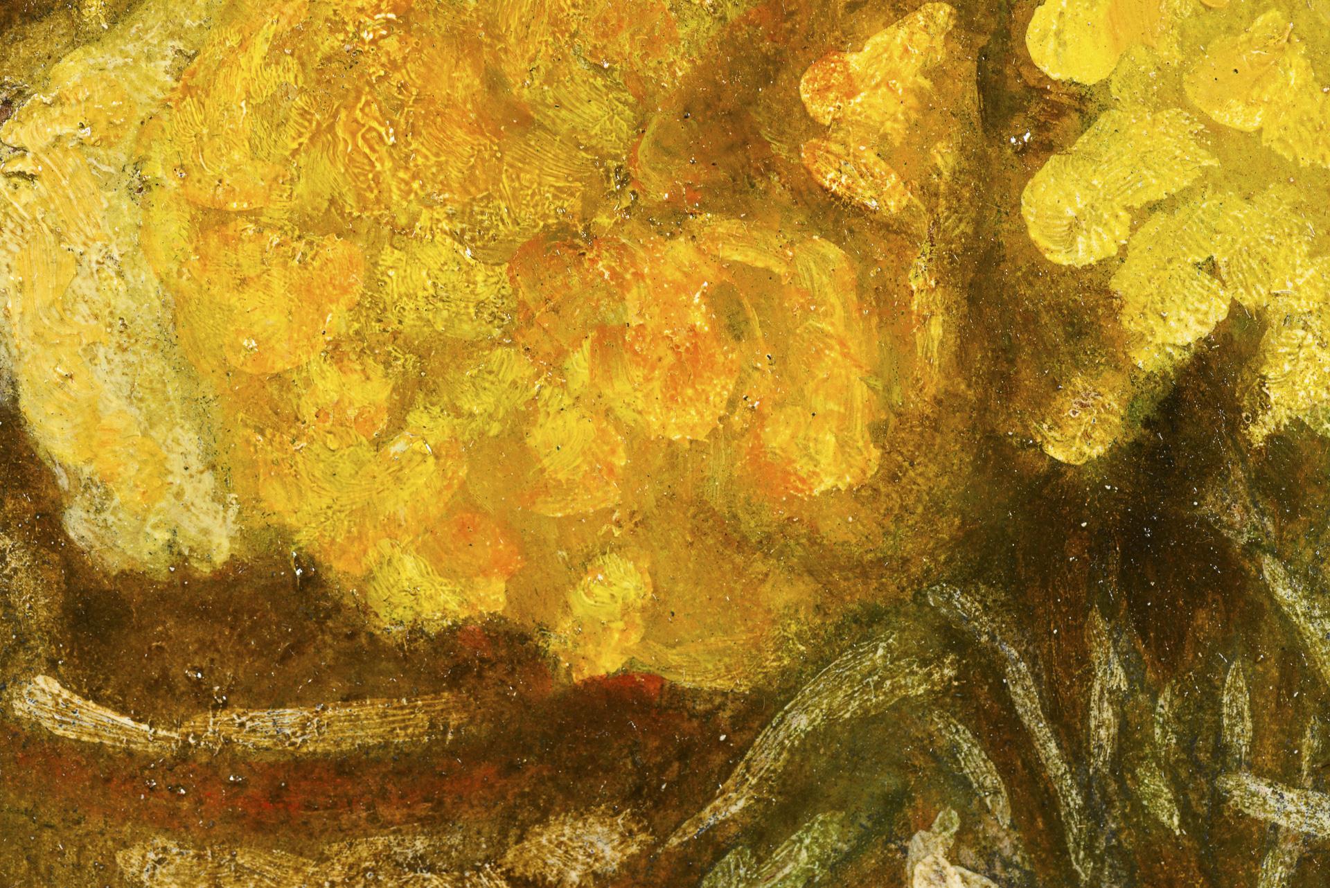 30 x 30 cm. Framed : 43 x 43 cm (gold stucco frame).