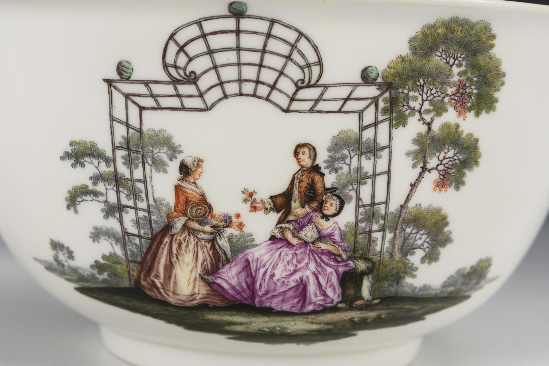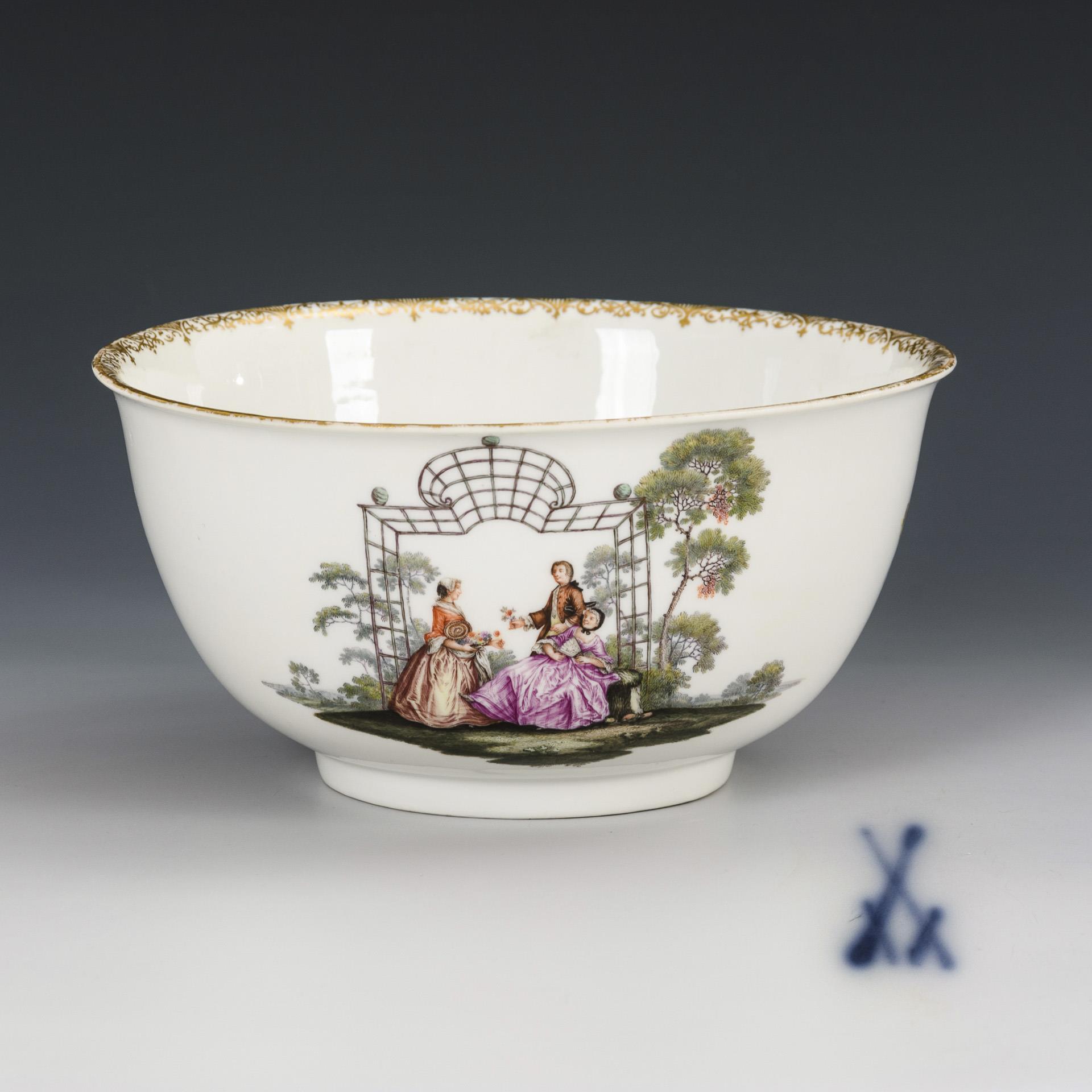Depicting a park landscape on both sides with 1x a gallant couple with a flower seller and 1x a dancer with two musicians. Mirror rubbed.