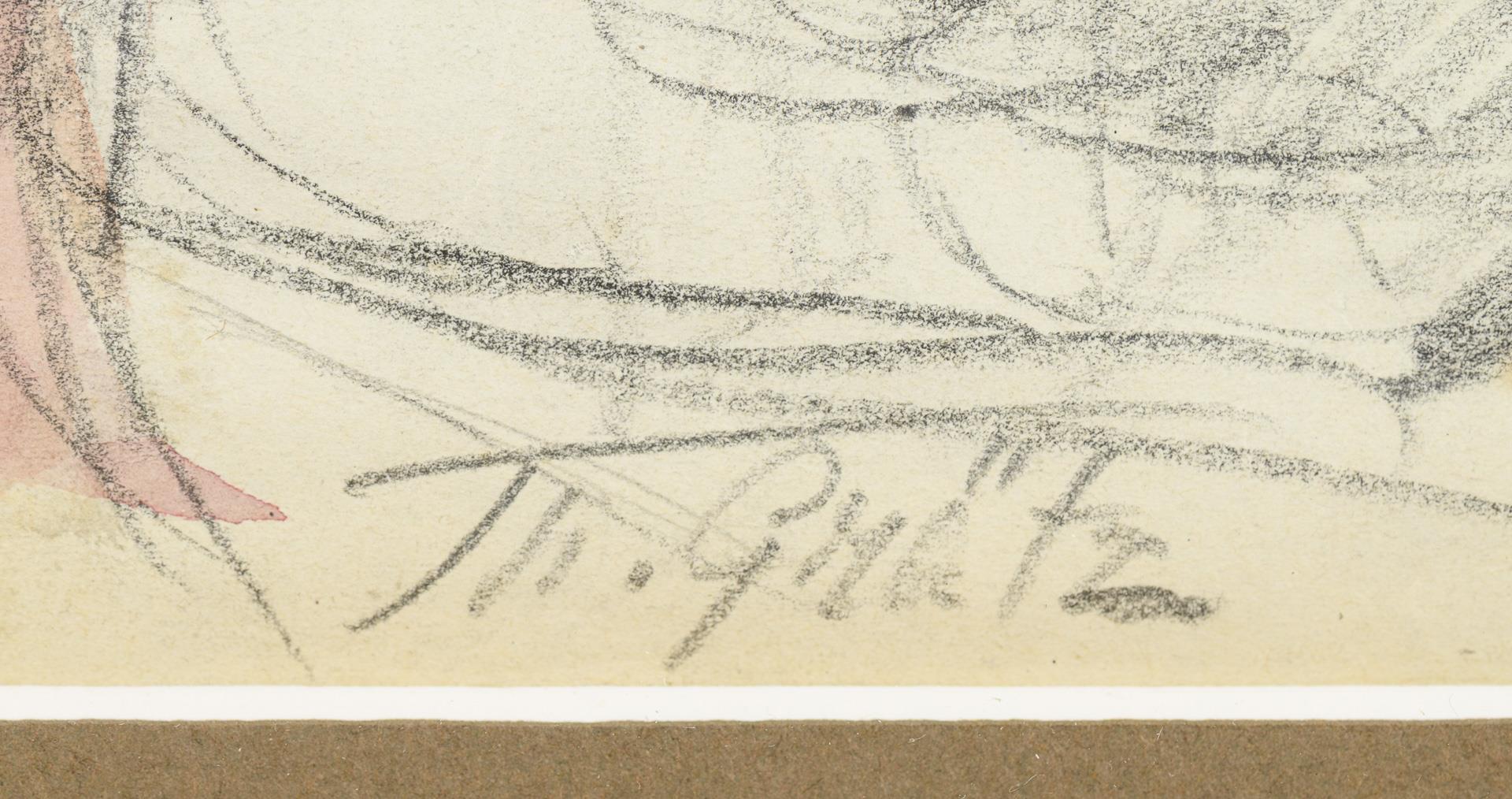 Passe-partout cut-out 27 x 33.5 cm. Framed & behind glass : 39.5 x 44.5 cm (beige-gold frame).