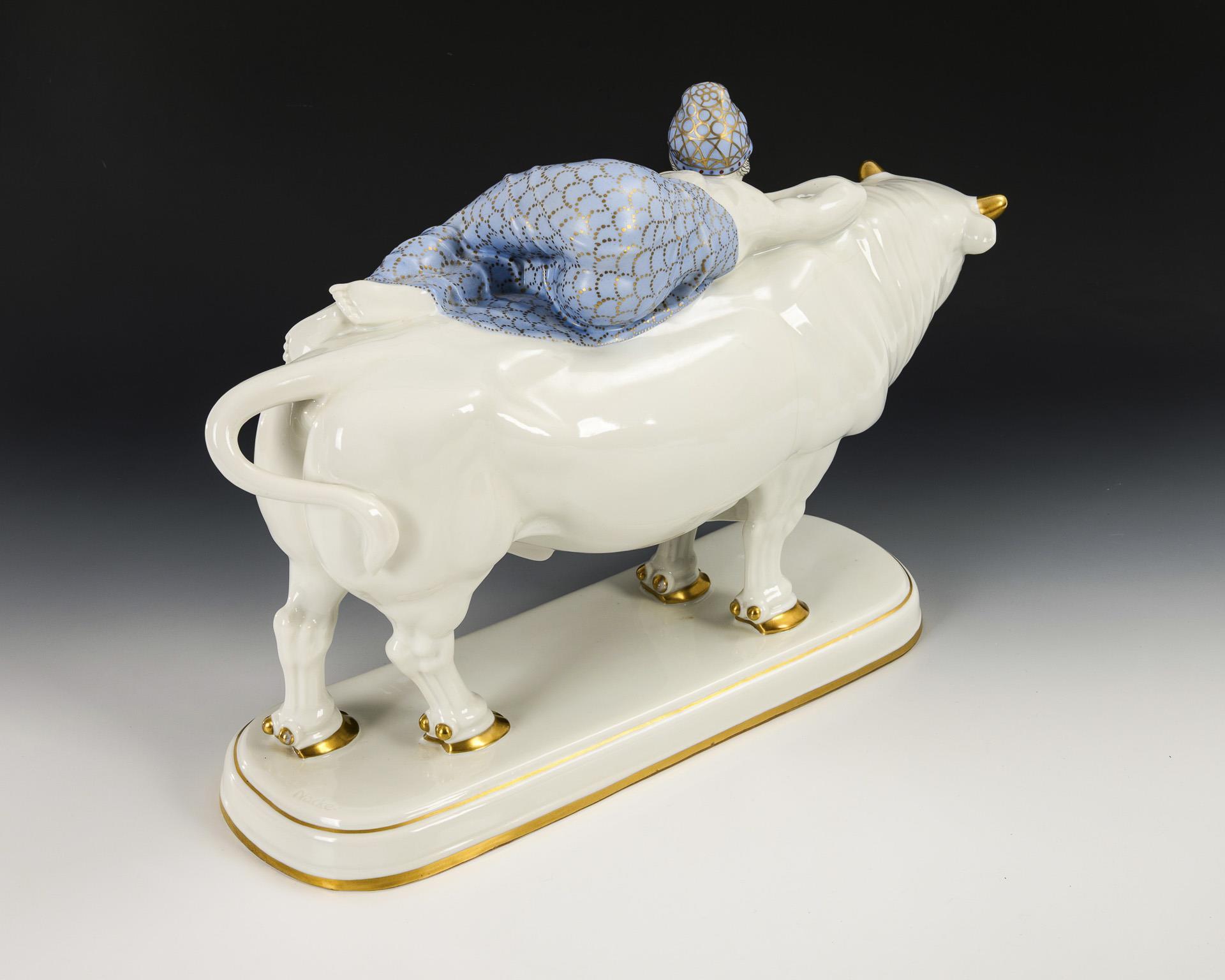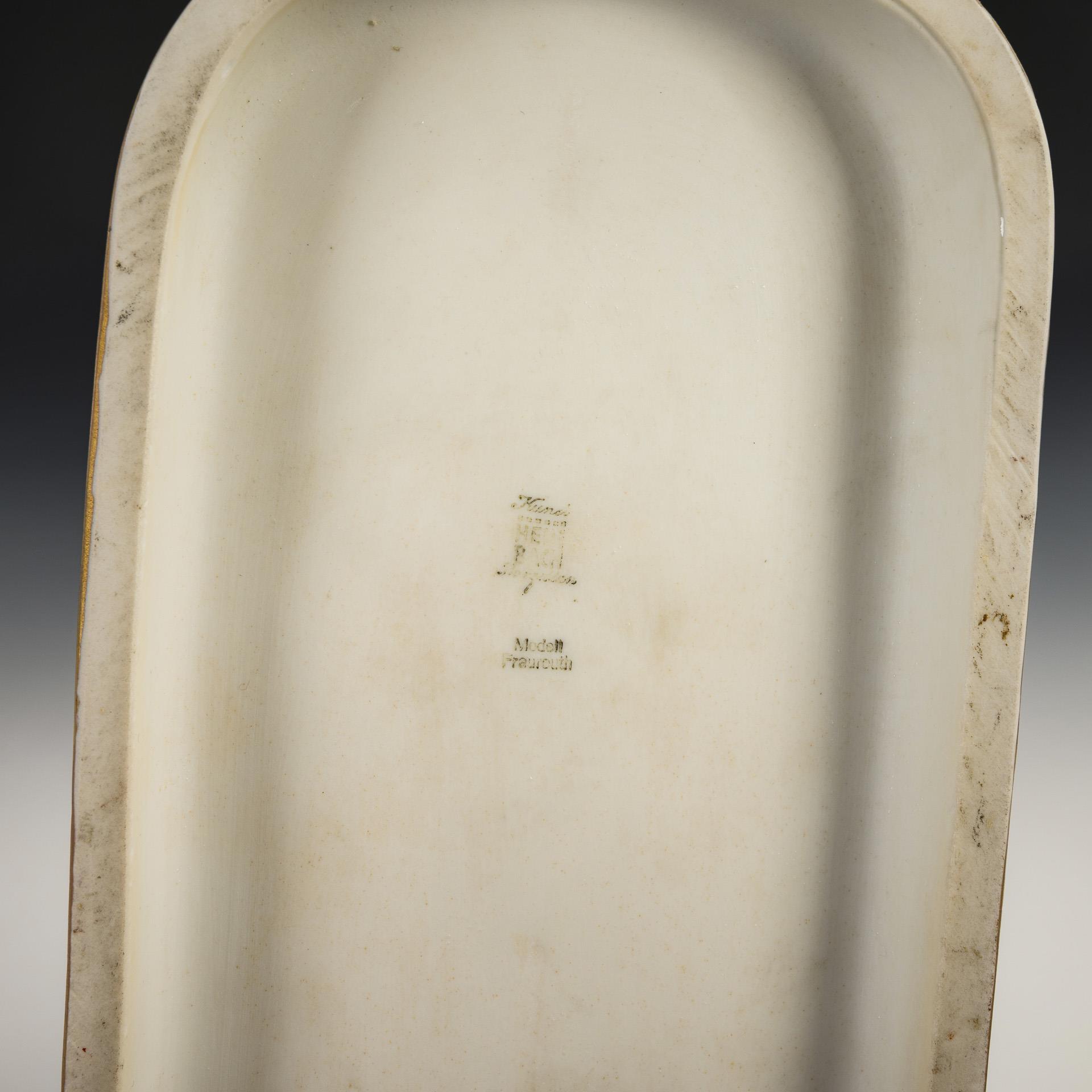 White with polychrome painting and gold decoration. H 32 cm, l 51 cm.