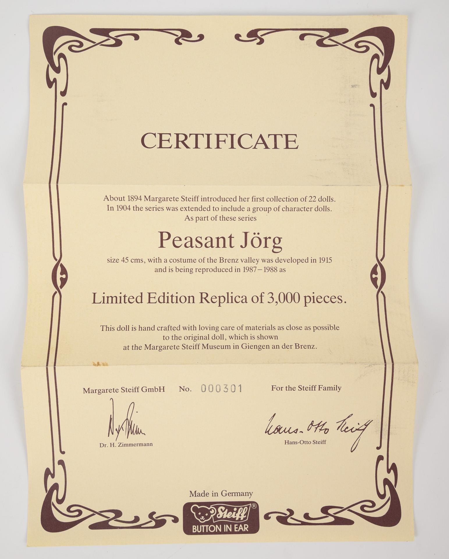 Limited felt doll "Farmer Jörg" in original box. Steiff.