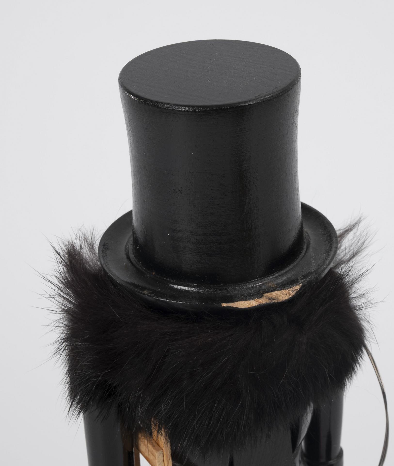Expertic nutcracker as a chimney sweep with top hat. Hat brim chipped. H 29.5 cm. In defective original box without lid (VEB Kunstgewerbe-Werkstätten Olbernhau). / Walnut "Noix de Grenoble". L 16 cm. / Hazelnut "Tron confiseur Barcelonnette". L 11 cm.