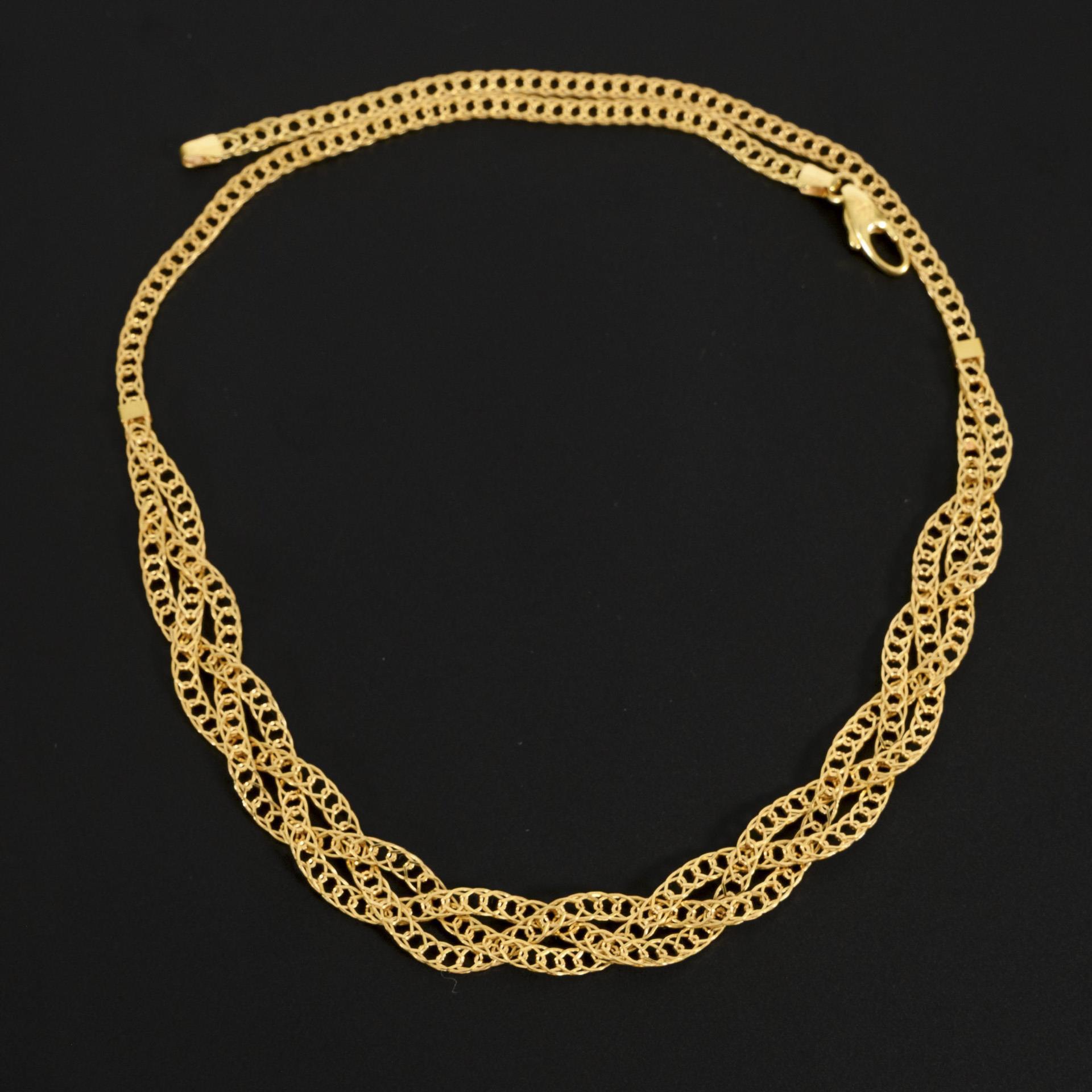 Braided gold necklace.