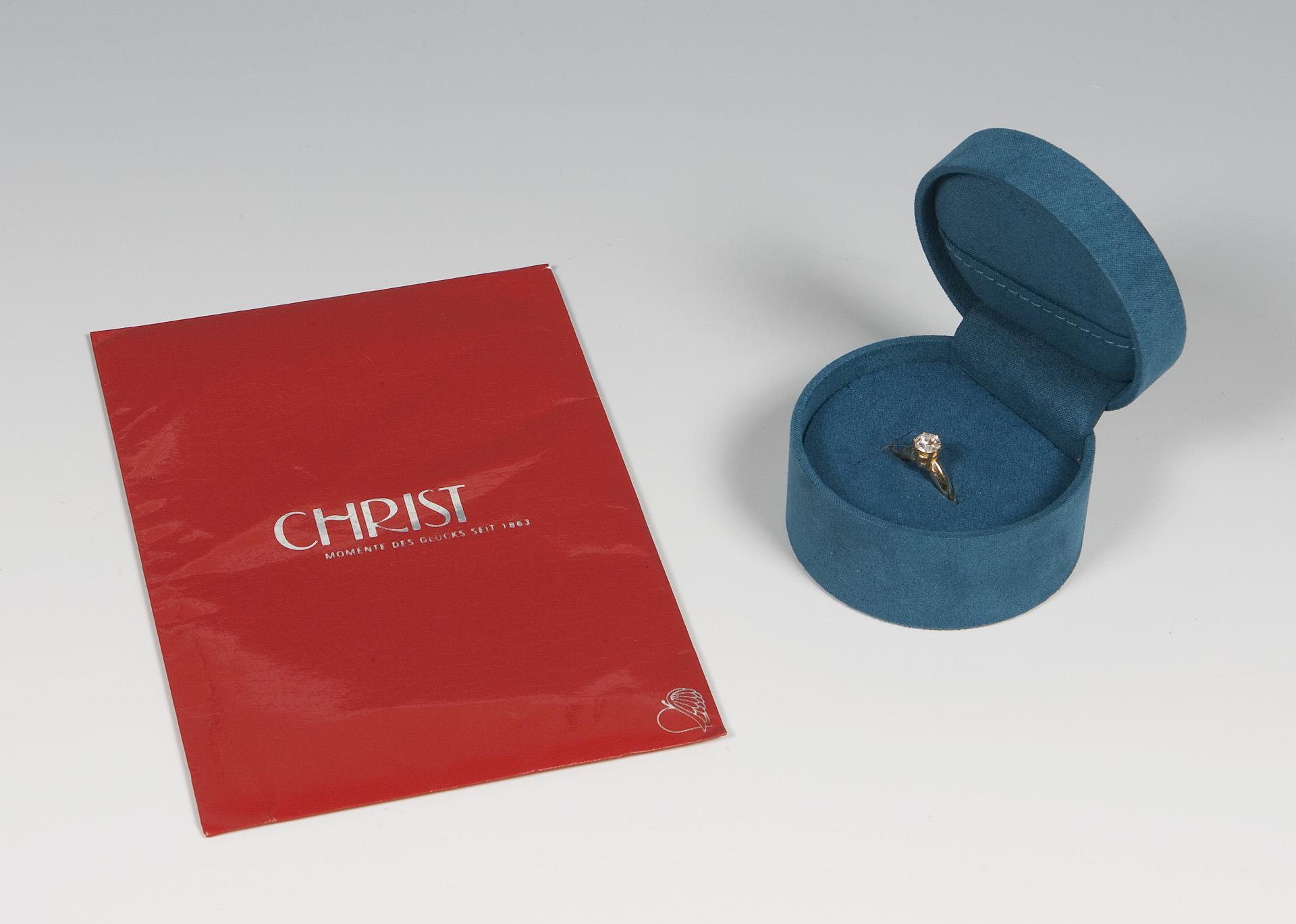 Solitaire diamond ring in original case. Christ jewelers and watchmakers.