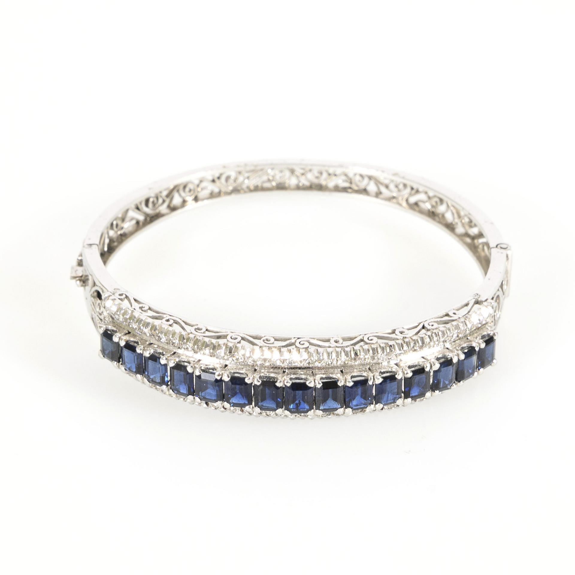 Bangle with blue colored stones, probably sapphires.